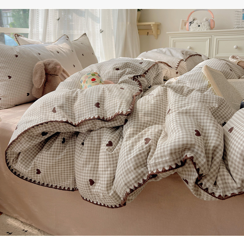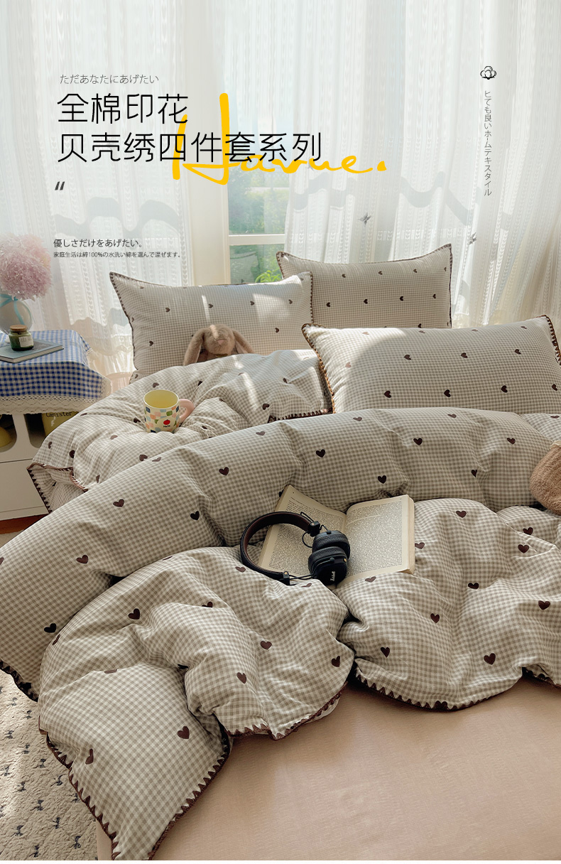 瑞莱 2026新款全棉印花贝壳边四件套 奶昔格