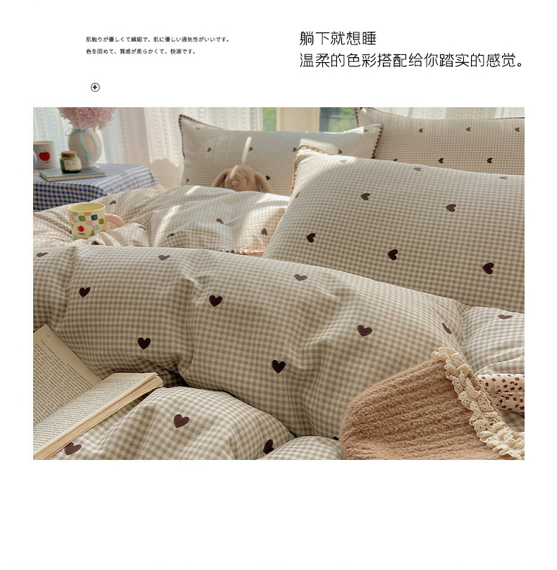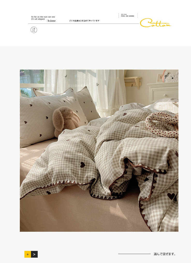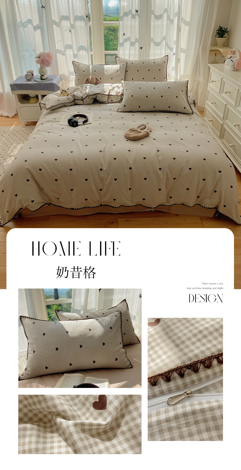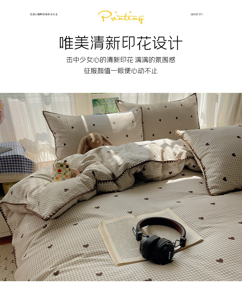 商品名称:瑞莱 2026新款全棉印花贝壳边四件套 奶昔格