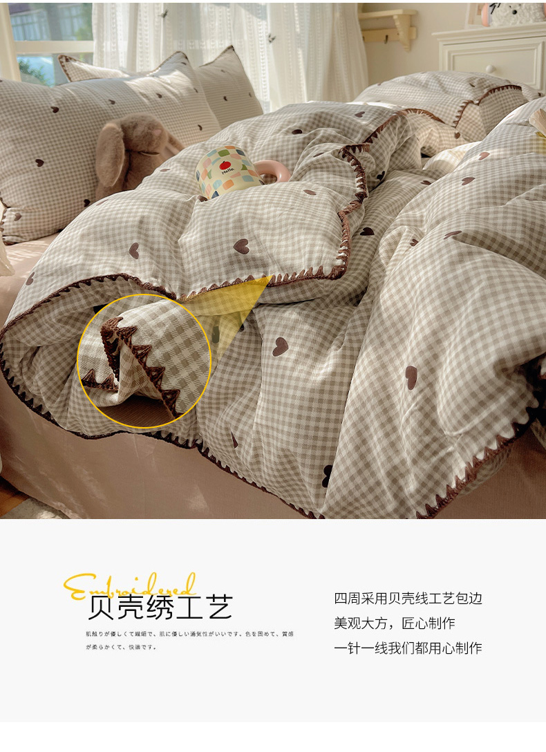 (总)瑞莱 2025新款全棉轻奢水洗棉贝壳绣四件套,豆沙,粉玉,米白,米黄,浅灰,浅蓝,深灰,深蓝,水绿,星蓝