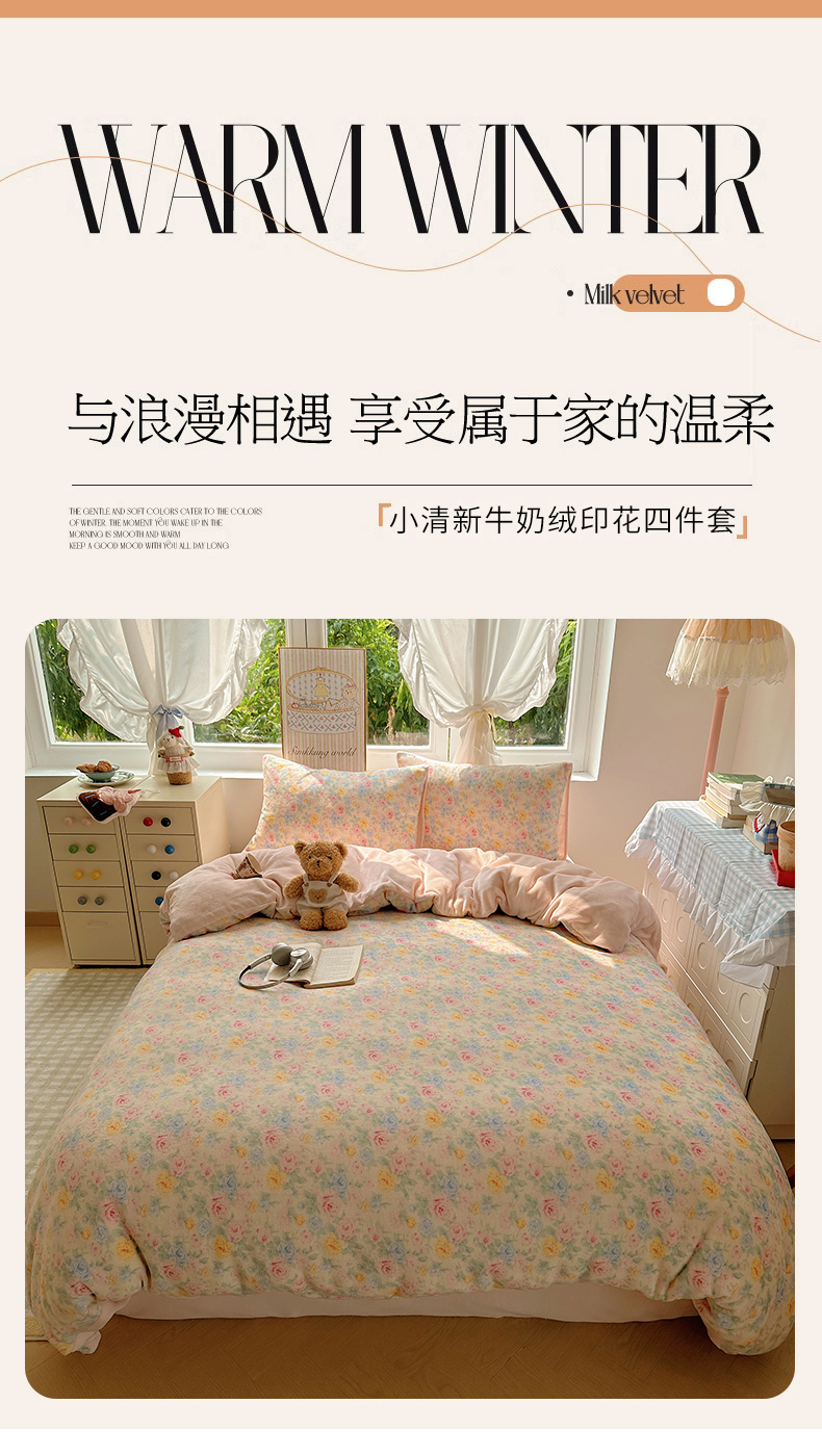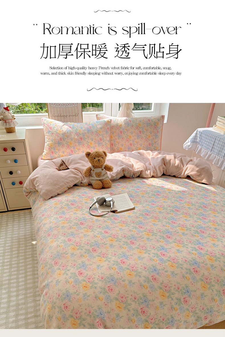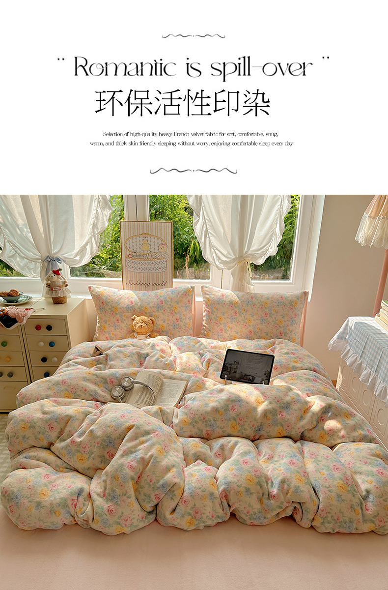 当前位置: 91家纺网 > 商品网购 > 床品套件 > 四件套 > 牛奶绒四件套 > 优选 2025新款小清新加厚高克重牛奶绒四件套直播热款新花型更新 春意满园