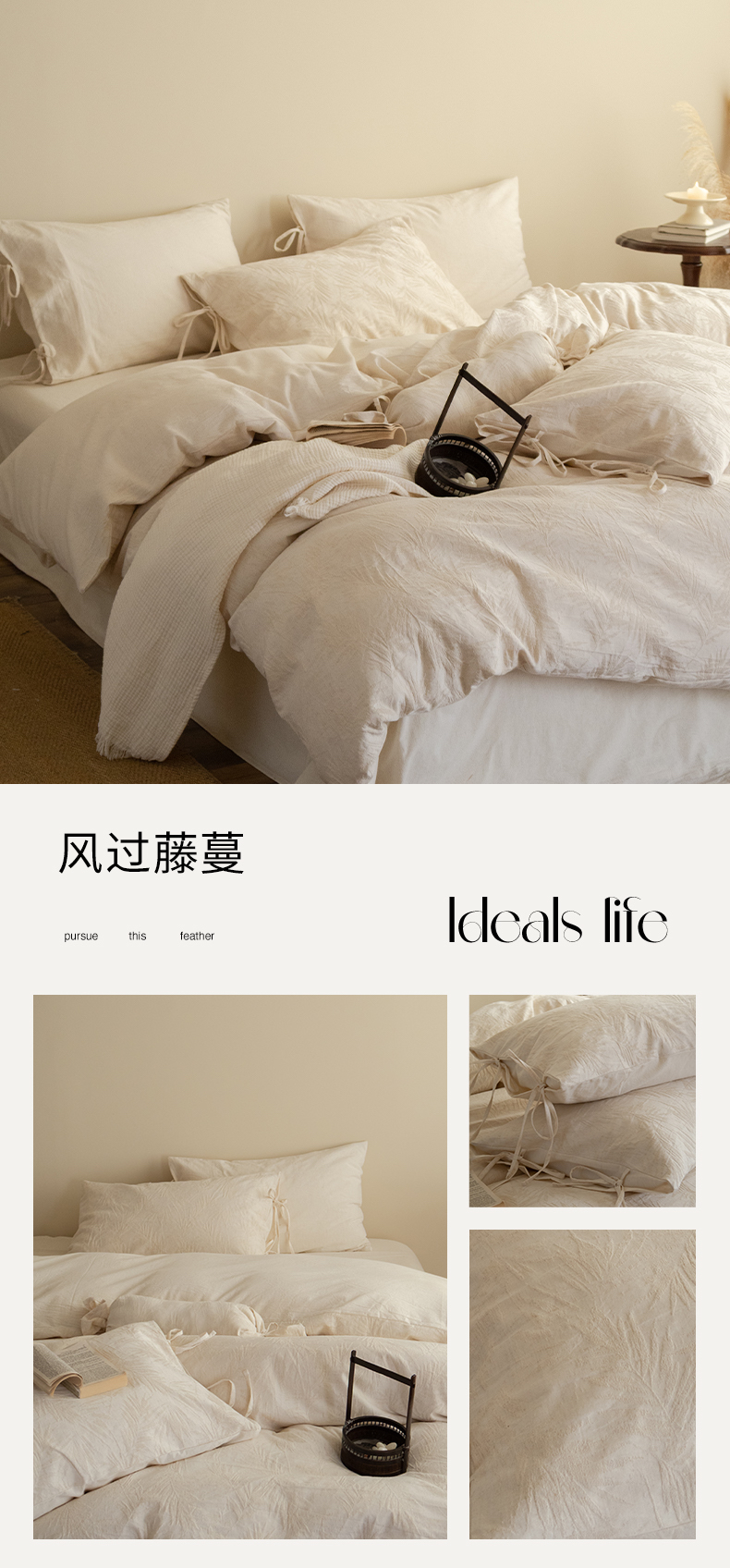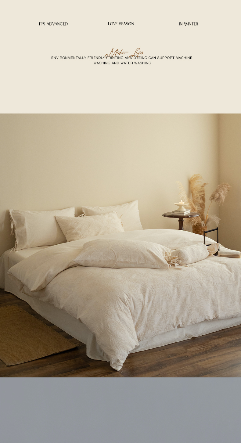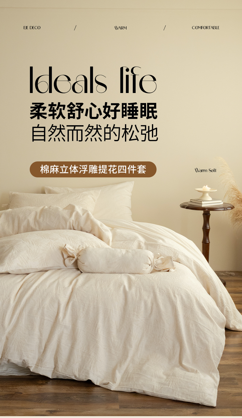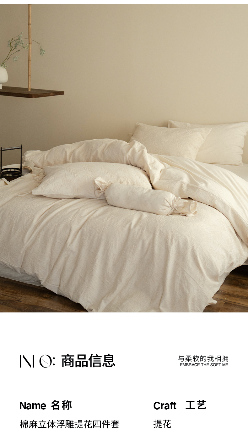 当前位置: 91家纺网 > 商品网购 > 床品套件 > 四件套 > 全棉普通四件套 > (总)极简 2026新款全棉亚麻浮雕提花四件套(控价:小号195标准295加大313)