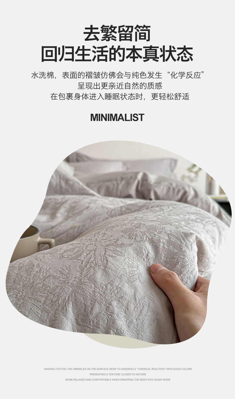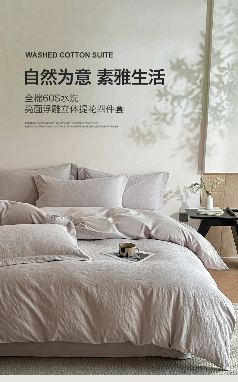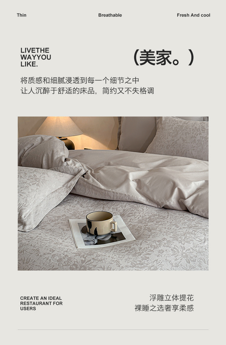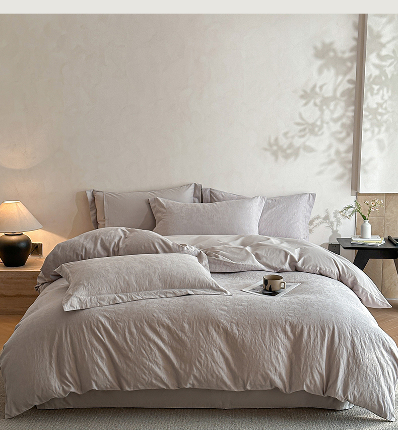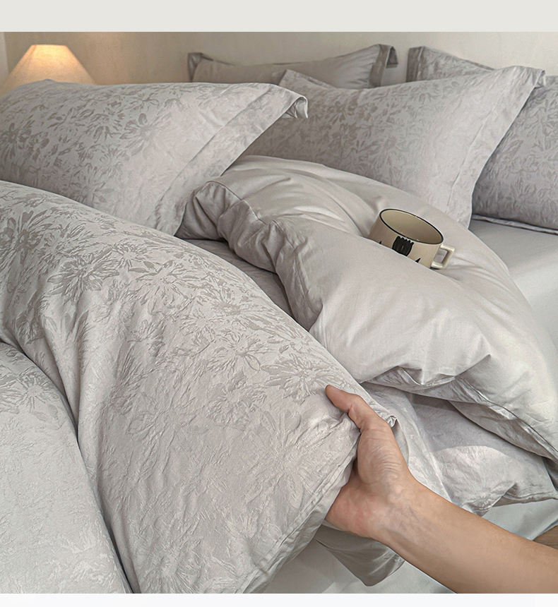 当前位置: 91家纺网 > 商品网购 > 床品套件 > 四件套 > 全棉普通四件套 > 笙意家纺 2025新款全棉纯棉60水洗亮面浮雕立体提花四件套 梵花绘-银灰