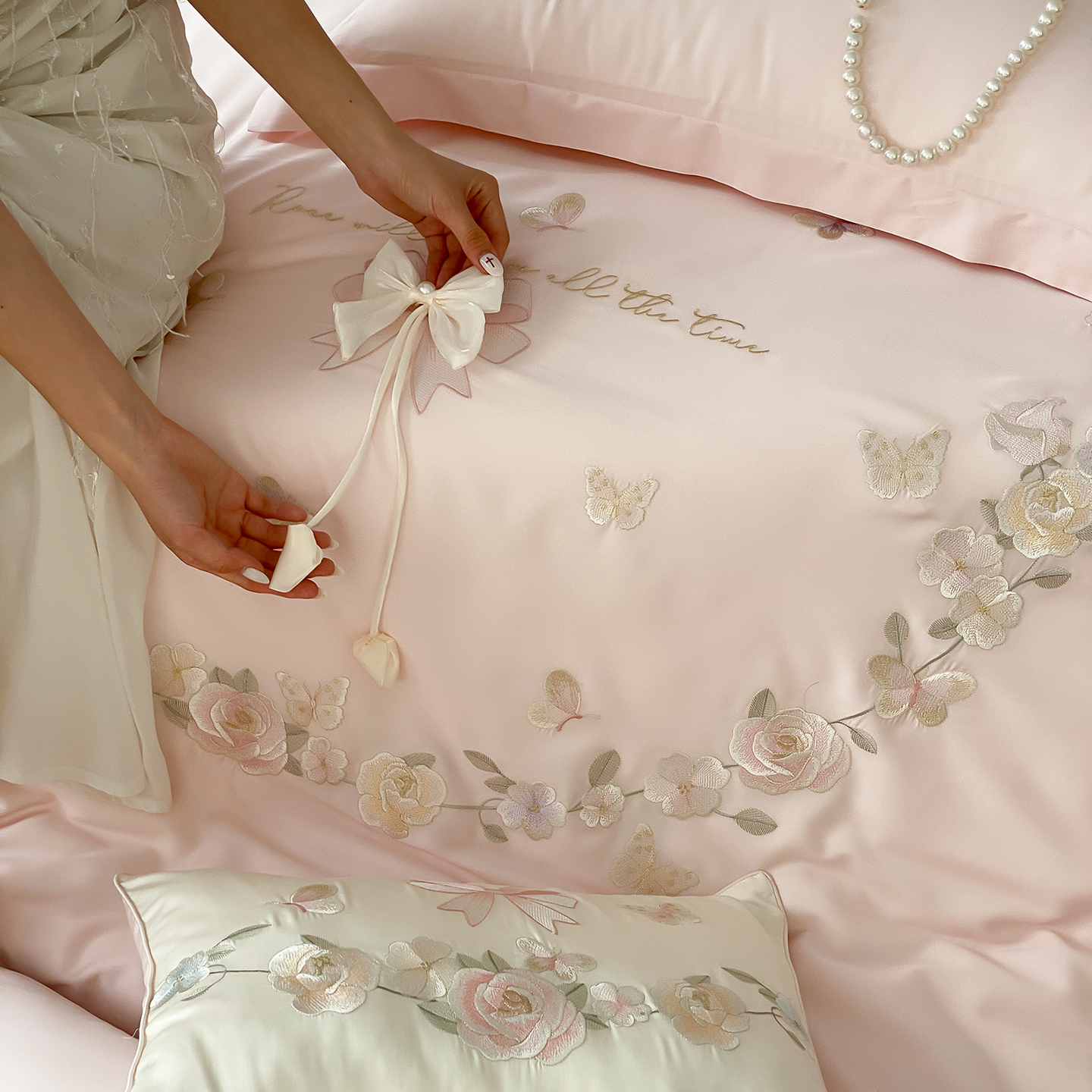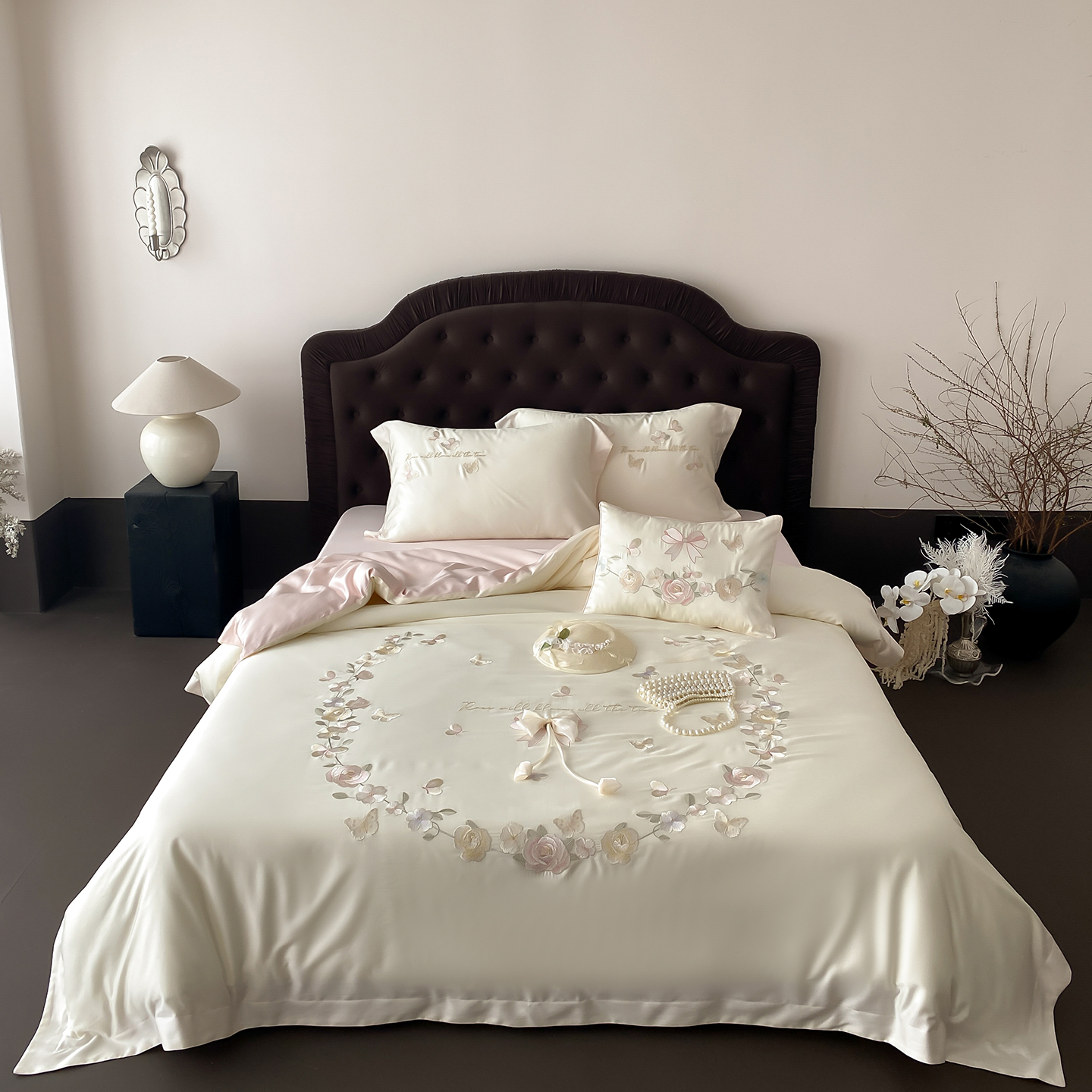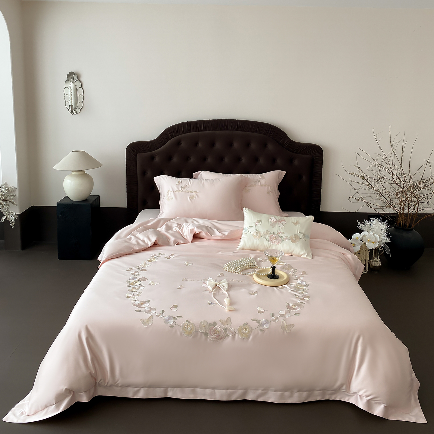 商品名称:佳汐蓝家纺 2025新款天丝棉磨毛四件套-花序 花序-珍珠粉