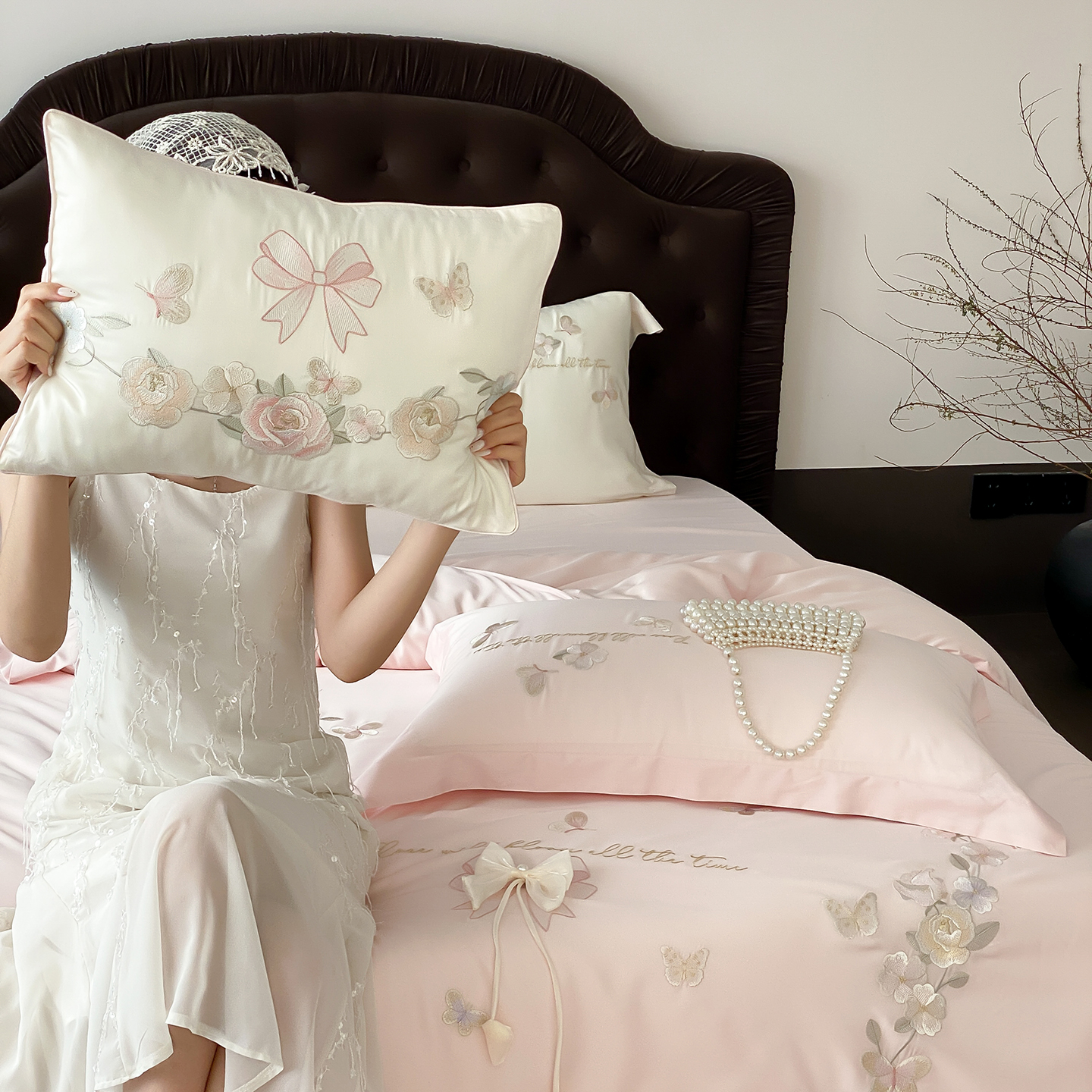 (总)佳汐蓝家纺 2025春夏新款天丝棉蝶舞繁花绣花天丝四件套,蝶舞繁花·粉,蝶舞繁花·蓝