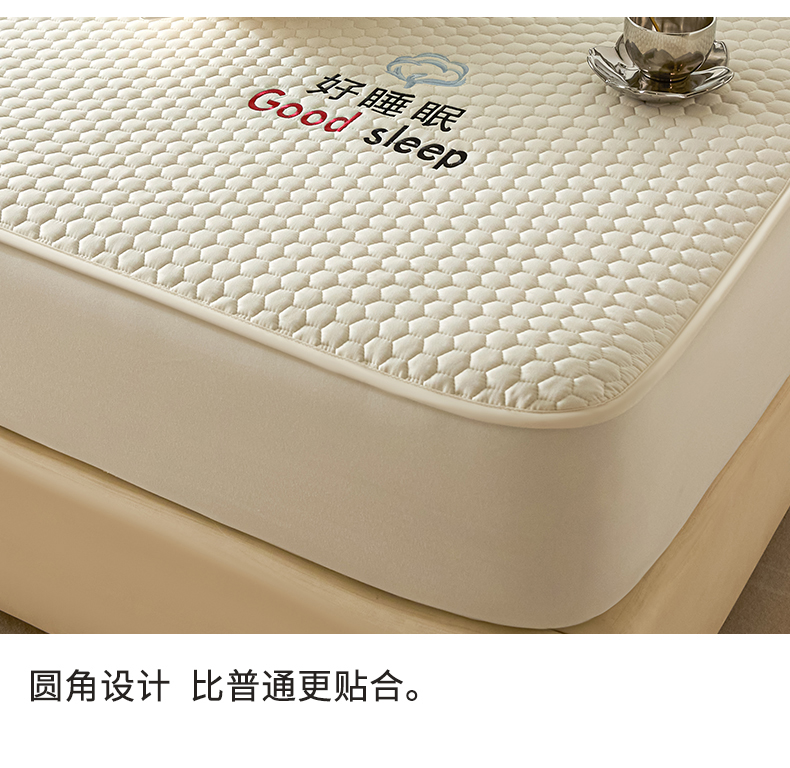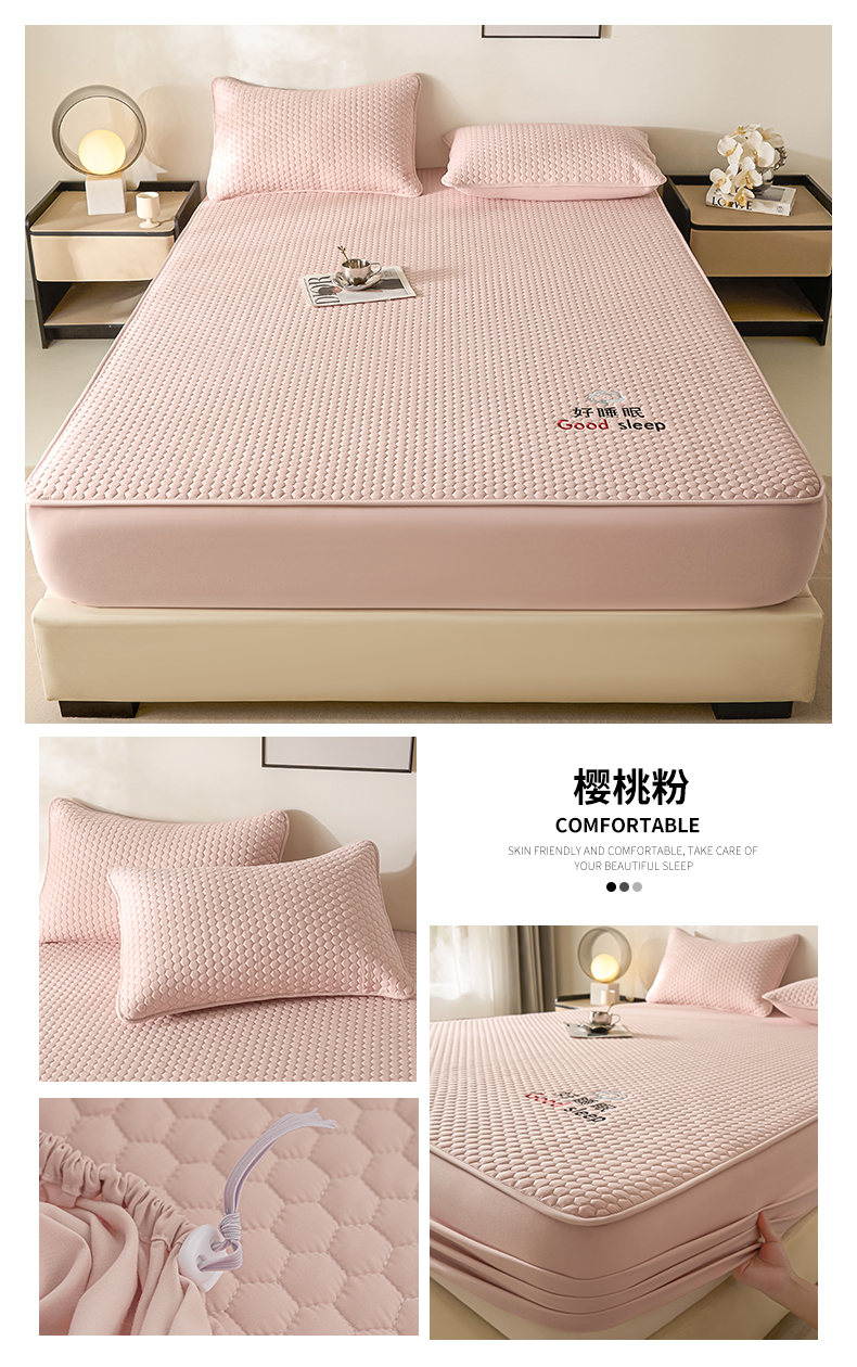 (总)居眠 2025新款防水夹棉床笠-清雅,清雅-粉色,清雅-灰色,清雅-卡其,清雅-绿色,清雅-米白,清雅-深蓝