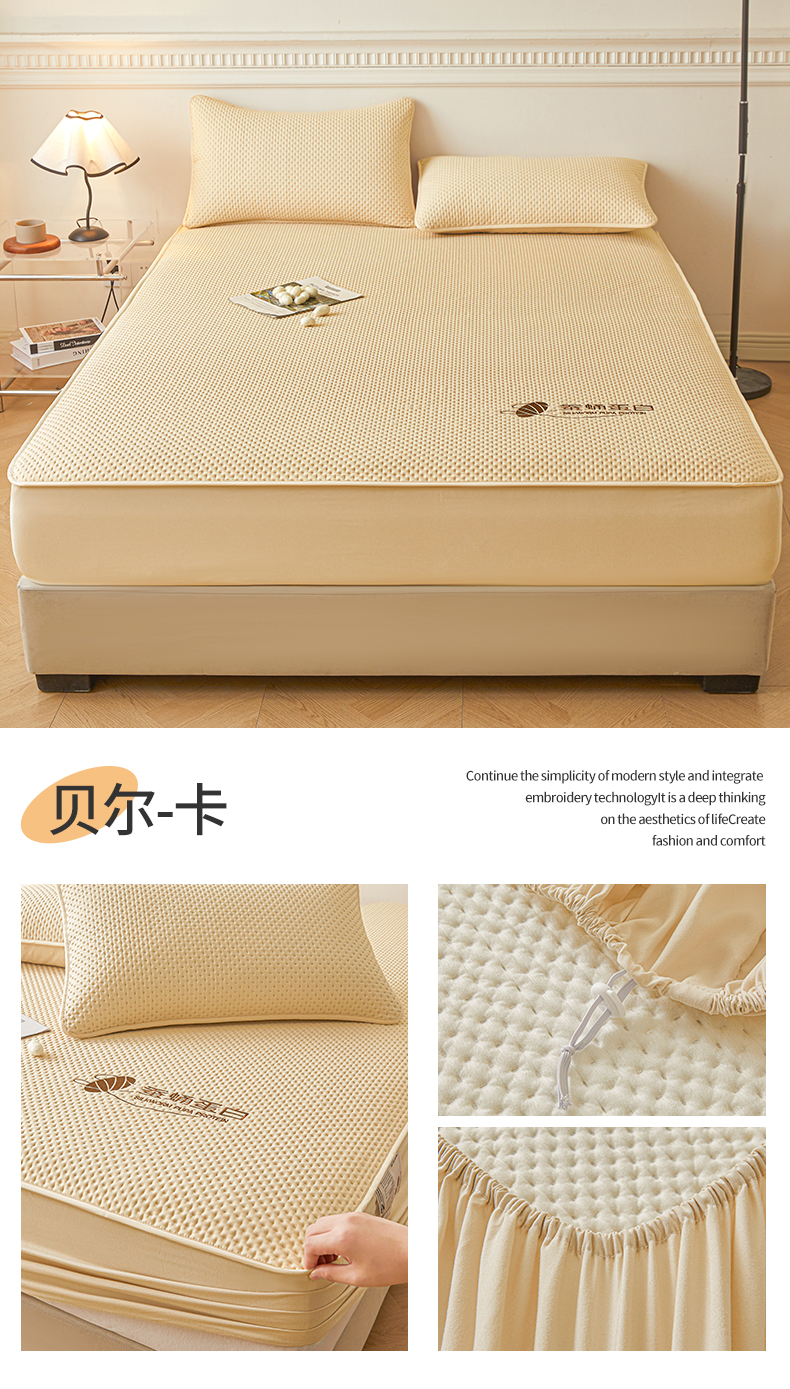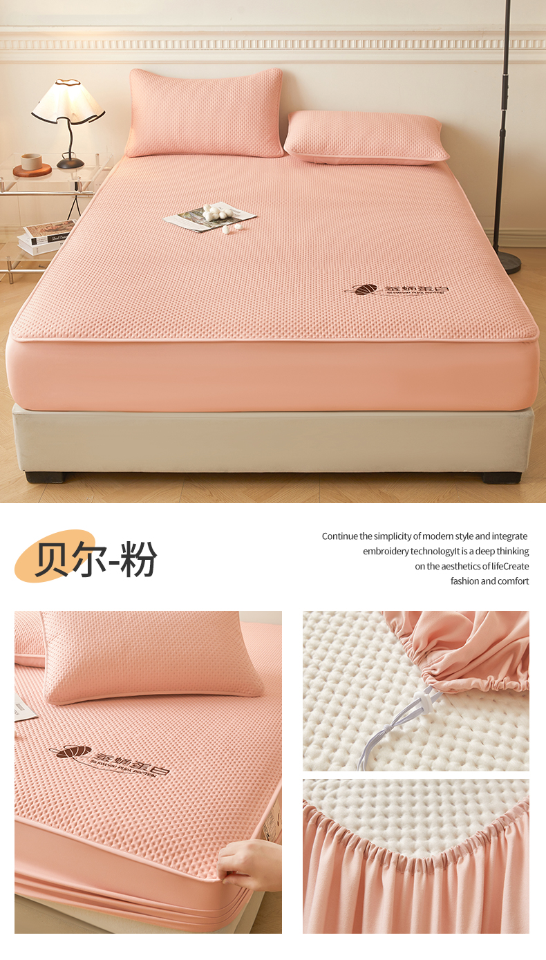 (总)居眠 2025新款防水夹棉床笠-清雅,清雅-粉色,清雅-灰色,清雅-卡其,清雅-绿色,清雅-米白,清雅-深蓝
