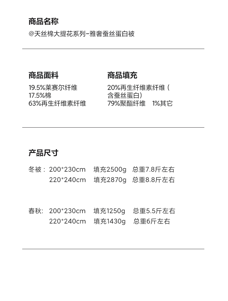 商品名称:(总)佳汐蓝家纺 2026新款天丝棉大提花系列雅奢蚕丝蛋白被 被子被芯