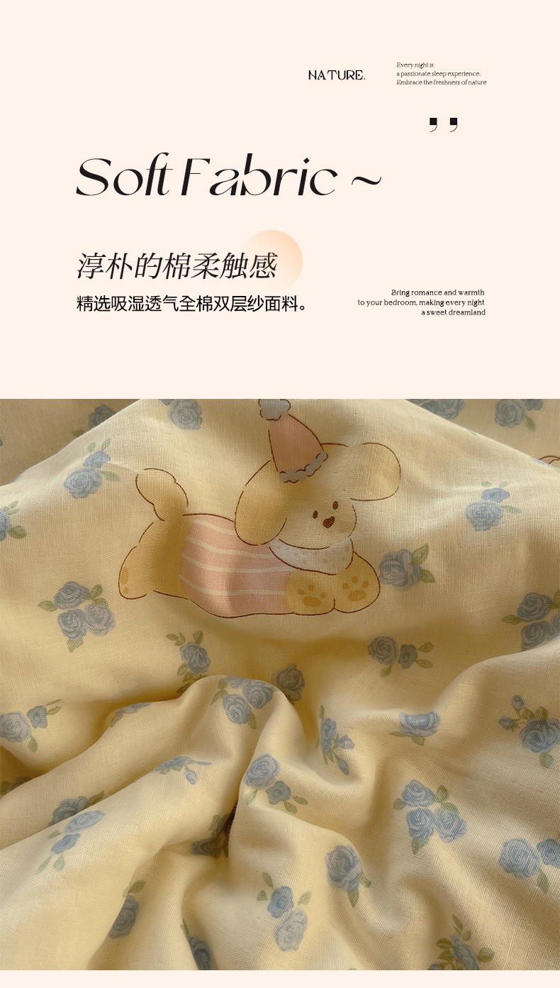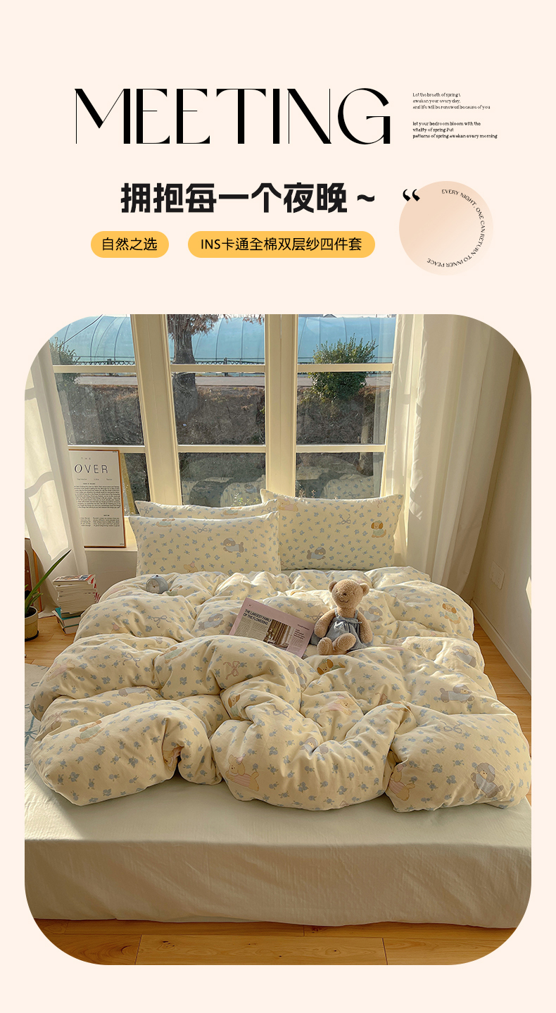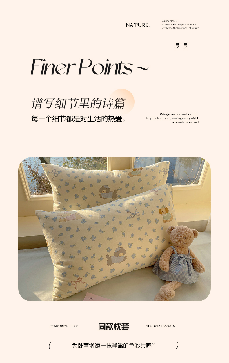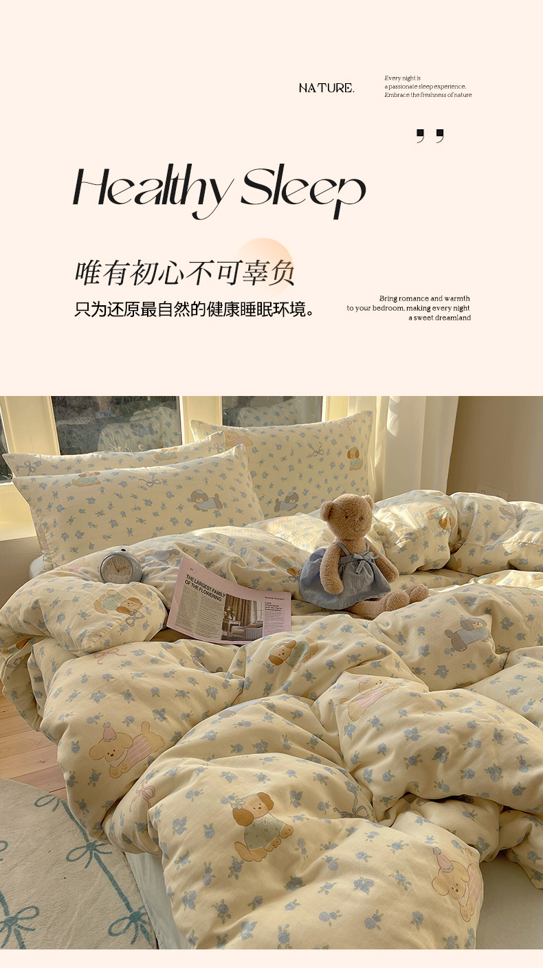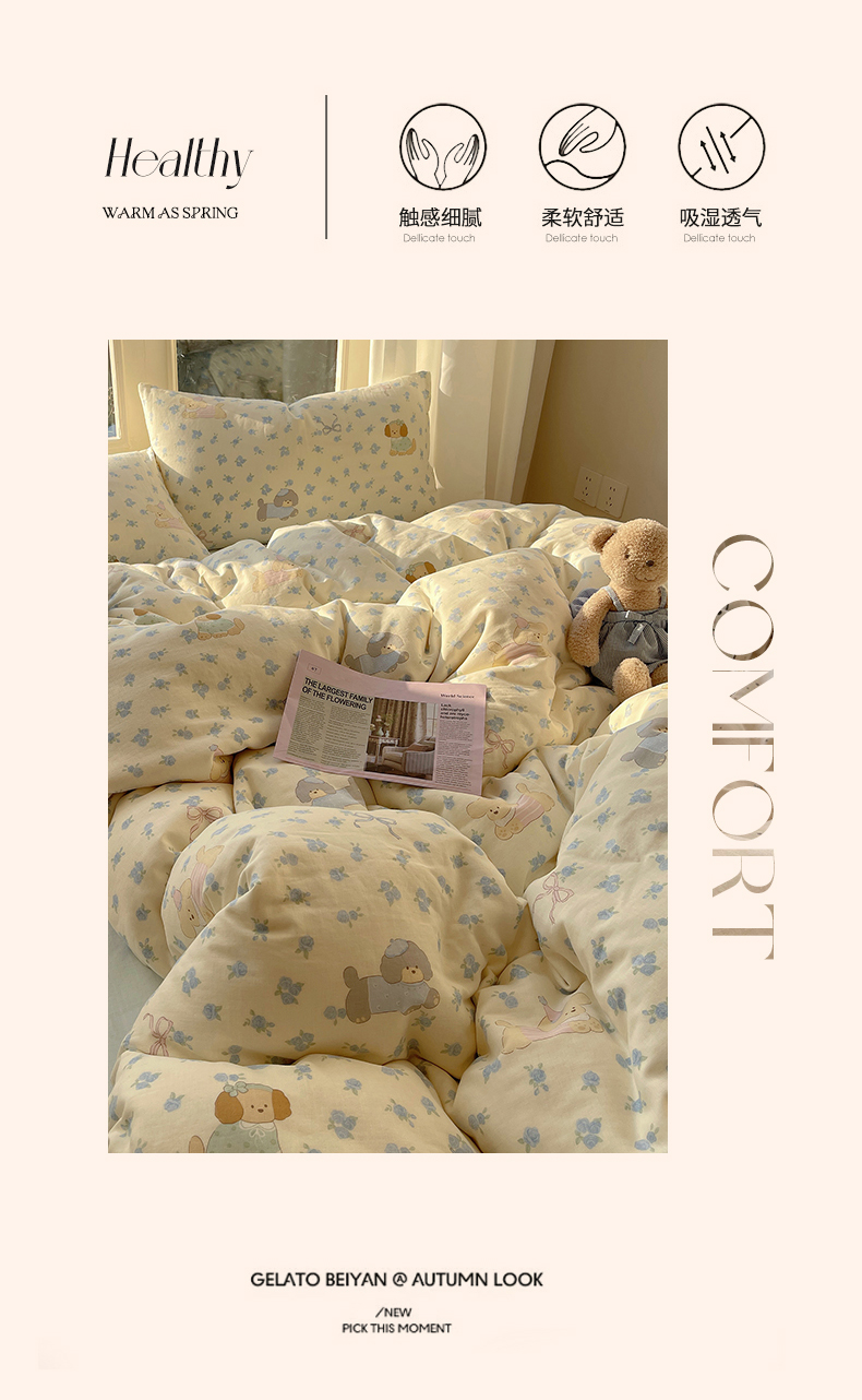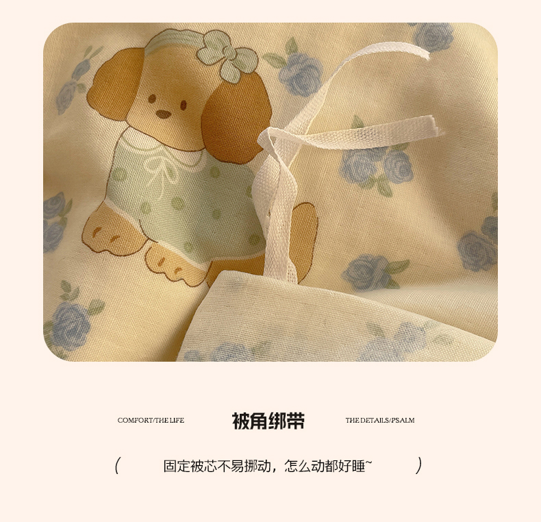 当前位置: 91家纺网 > 商品网购 > 床品套件 > 四件套 > 全棉普通四件套 > 六巷胡同 2026春夏新款INS卡通A类全棉纯棉双层纱四件套 双层纱-蓝碎花修狗