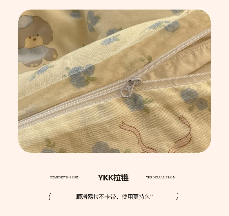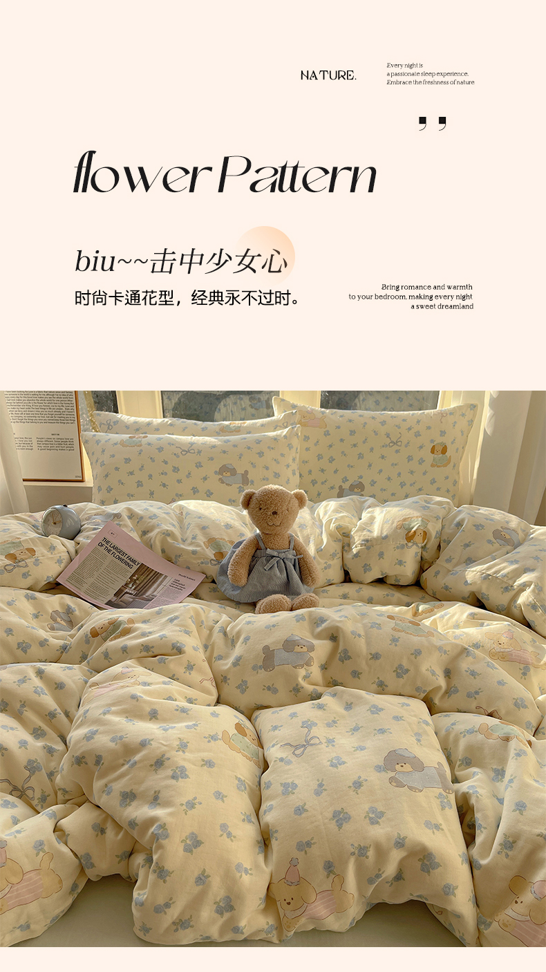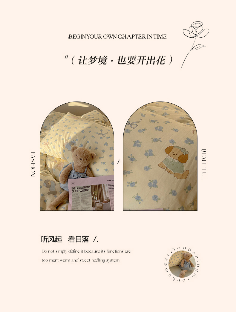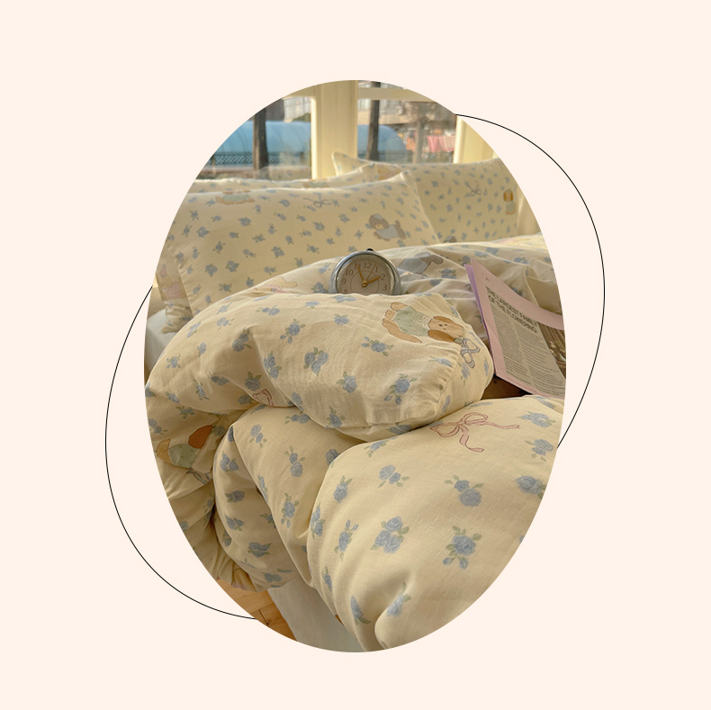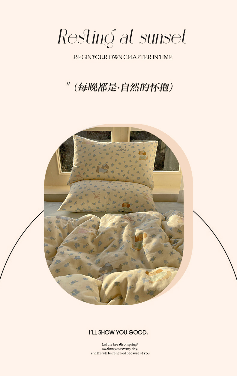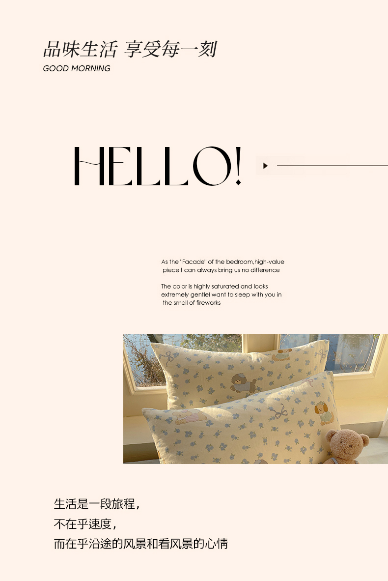 当前位置: 91家纺网 > 商品网购 > 床品套件 > 四件套 > 全棉普通四件套 > 六巷胡同 2026春夏新款INS卡通A类全棉纯棉双层纱四件套 双层纱-蓝碎花修狗