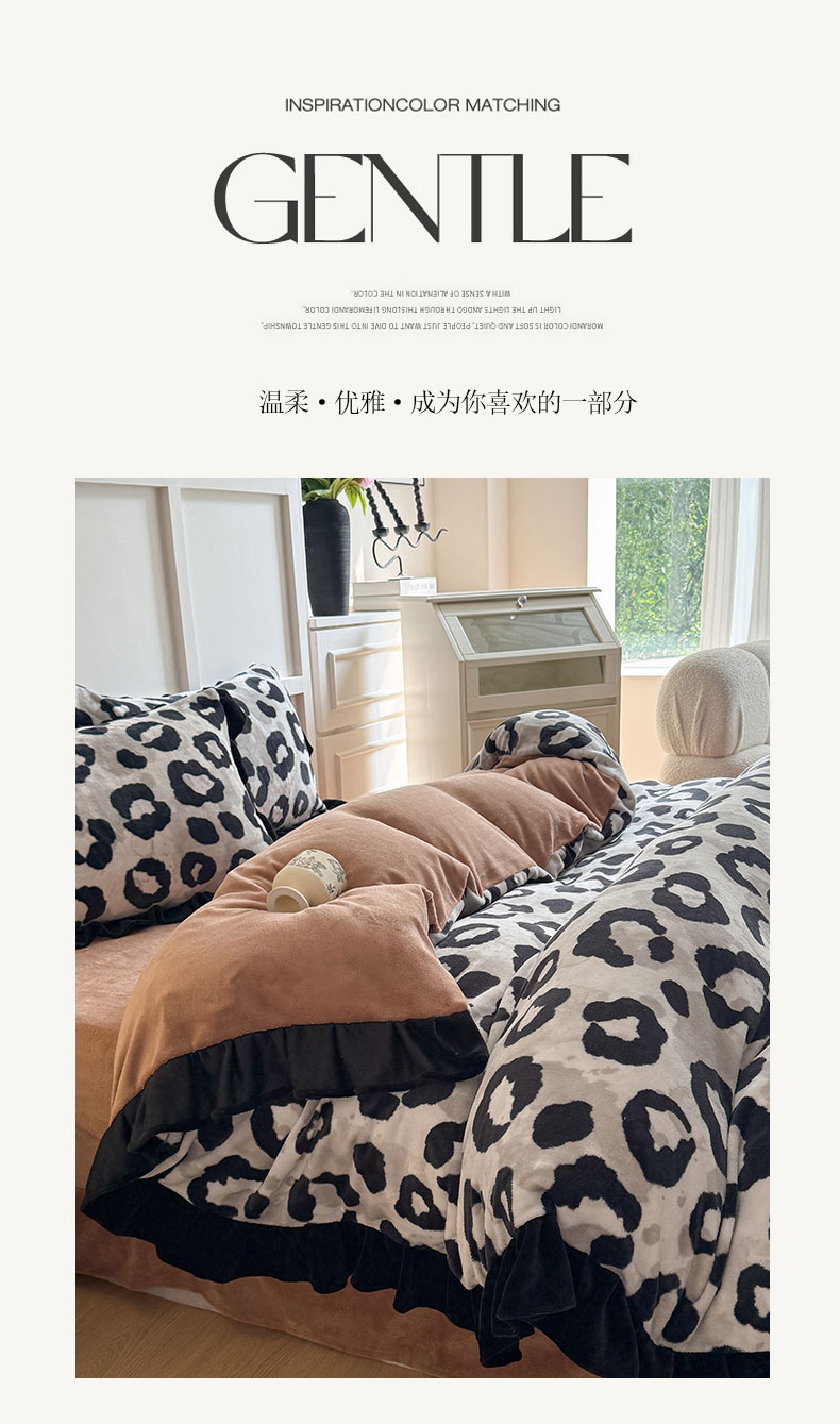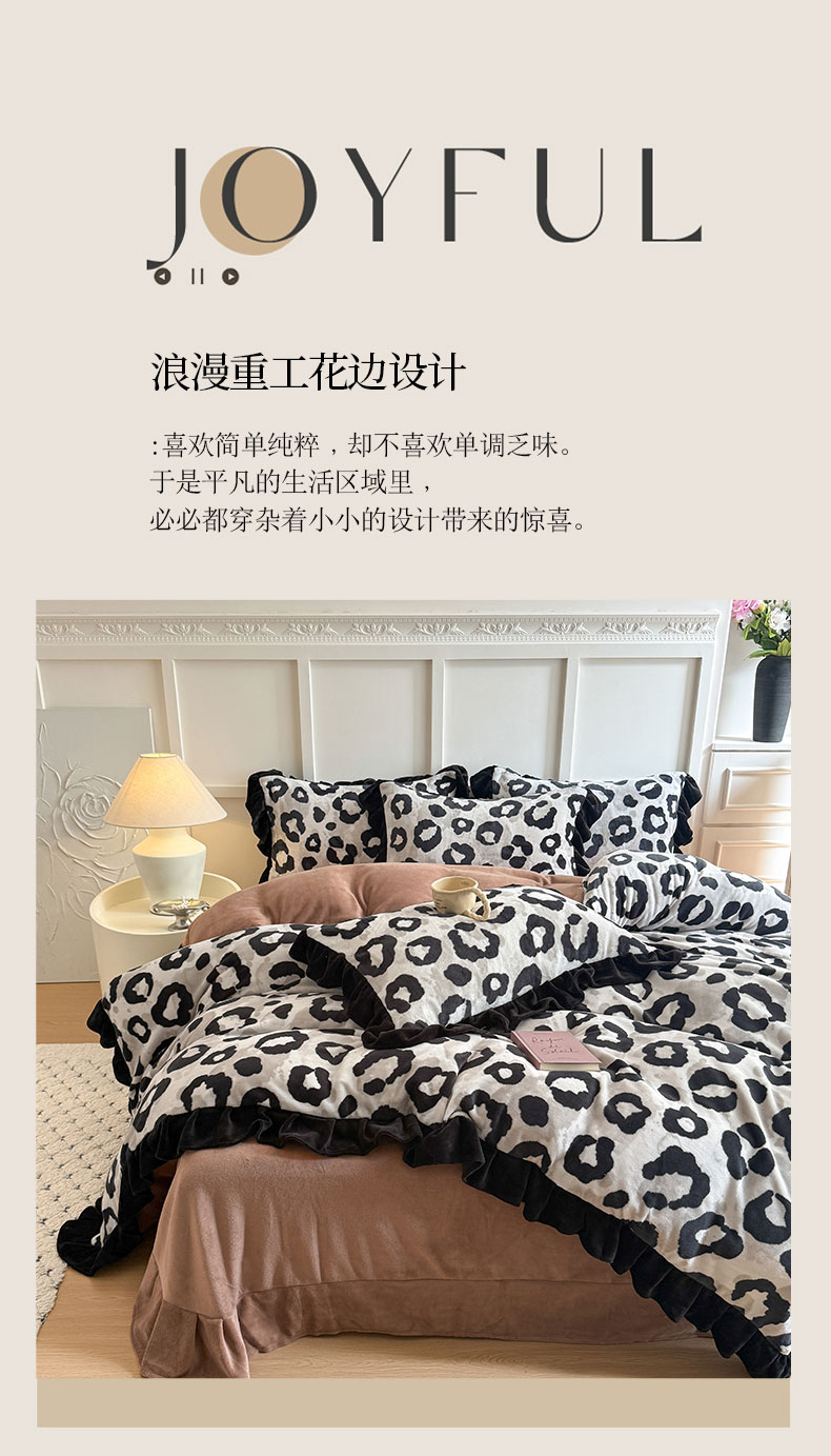 温眠家纺 2025新款200g全工艺牛奶绒花边款四件套吊边床单 野性