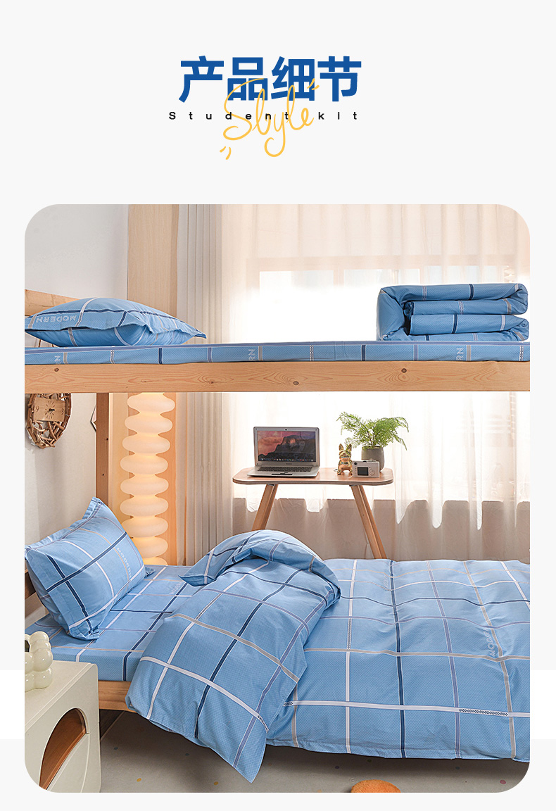 商品名称:小雨家纺 2026新款13372宿舍纯棉40支印花三件套 幕舒格-蓝