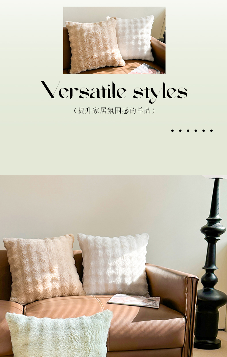 (总)囍莱家纺 2026新款兔毛绒暖冬抱枕,馥芮白,灰黑巧,抹茶绿,拿铁棕,组合图仅供展示