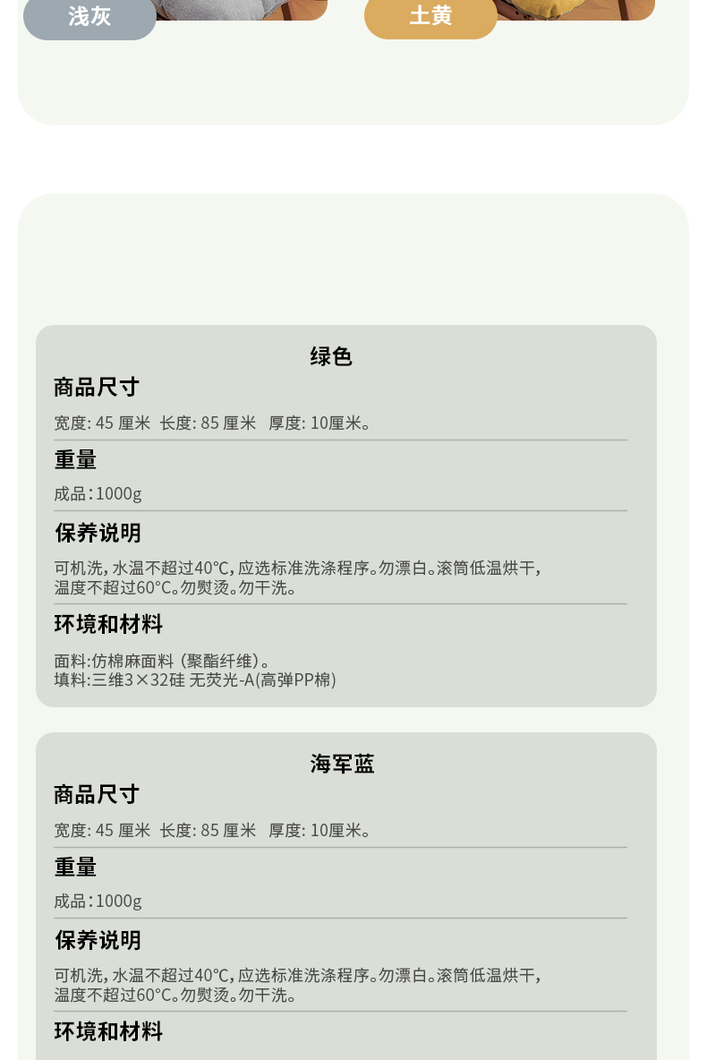 [{"sp_id":11,"sp_name":"\u989c\u8272","sp_format":2,"sp_list":[{"sp_value_id":1662,"sp_value_name":"\u6d45\u7070","sp_value_image":{"id":999,"path":"https:\/\/img3.91jf.com\/ghelp\/2025\/20251230\/20251230163208_256232.jpg"},"sp_value_video":{"id":0,"img":"","path":"","time":0,"download_num":0,"play_num":0},"price":"36.00","storage":500,"weight":"1.000","is_check_weight":0,"plus_price":"","sp_sort":0},{"sp_value_id":1663,"sp_value_name":"\u6d77\u519b\u84dd","sp_value_image":{"id":999,"path":"https:\/\/img3.91jf.com\/ghelp\/2025\/20251230\/20251230163208_806191.jpg"},"sp_value_video":{"id":0,"img":"","path":"","time":0,"download_num":0,"play_num":0},"price":"36.00","storage":500,"weight":"1.000","is_check_weight":0,"plus_price":"","sp_sort":0},{"sp_value_id":1664,"sp_value_name":"\u7eff\u8272","sp_value_image":{"id":999,"path":"https:\/\/img3.91jf.com\/ghelp\/2025\/20251230\/20251230163209_826689.jpg"},"sp_value_video":{"id":0,"img":"","path":"","time":0,"download_num":0,"play_num":0},"price":"36.00","storage":500,"weight":"1.000","is_check_weight":0,"plus_price":"","sp_sort":0},{"sp_value_id":1665,"sp_value_name":"\u571f\u9ec4","sp_value_image":{"id":999,"path":"https:\/\/img3.91jf.com\/ghelp\/2025\/20251230\/20251230163210_231997.jpg"},"sp_value_video":{"id":0,"img":"","path":"","time":0,"download_num":0,"play_num":0},"price":"36.00","storage":500,"weight":"1.000","is_check_weight":0,"plus_price":"","sp_sort":0},{"sp_value_id":1666,"sp_value_name":"\u7ec4\u5408\u56fe\u4ec5\u4f9b\u5c55\u793a","sp_value_image":{"id":999,"path":"https:\/\/img3.91jf.com\/ghelp\/2025\/20251230\/20251230163210_364356.jpg"},"sp_value_video":{"id":0,"img":"","path":"","time":0,"download_num":0,"play_num":0},"price":"36.00","storage":500,"weight":"1.000","is_check_weight":0,"plus_price":"","sp_sort":0}]},{"sp_id":38,"sp_name":"\u5c3a\u5bf8","sp_format":1,"sp_list":[{"sp_value_id":457,"sp_value_name":"85*50*10cm\/\u4e2a","sp_value_image":{"id":0,"path":""},"sp_value_video":{"id":0,"img":"","path":"","time":0,"download_num":0,"play_num":0},"price":"36.00","storage":500,"weight":"1.000","is_check_weight":0,"plus_price":"","sp_sort":0}]}]