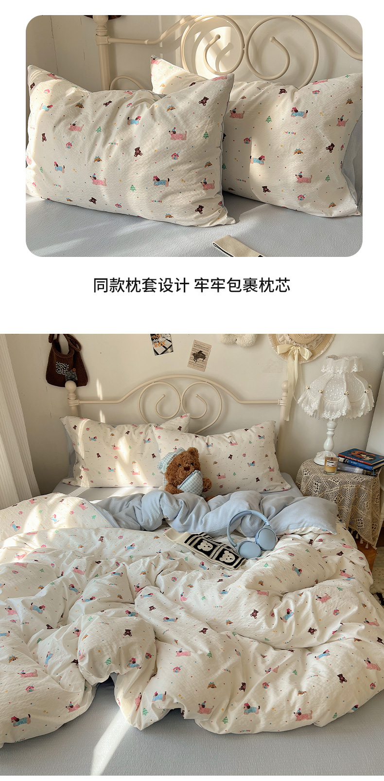 当前位置: 91家纺网 > 商品网购 > 床品套件 > 四件套 > 双层纱四件套 > 繁花家居 2026新款木棉双层纱四件套 蓝色腊肠狗