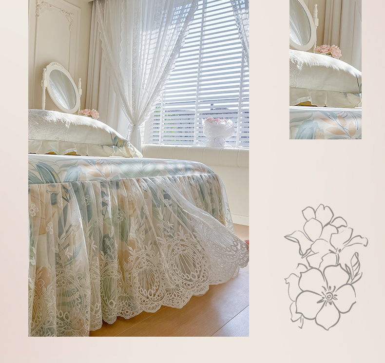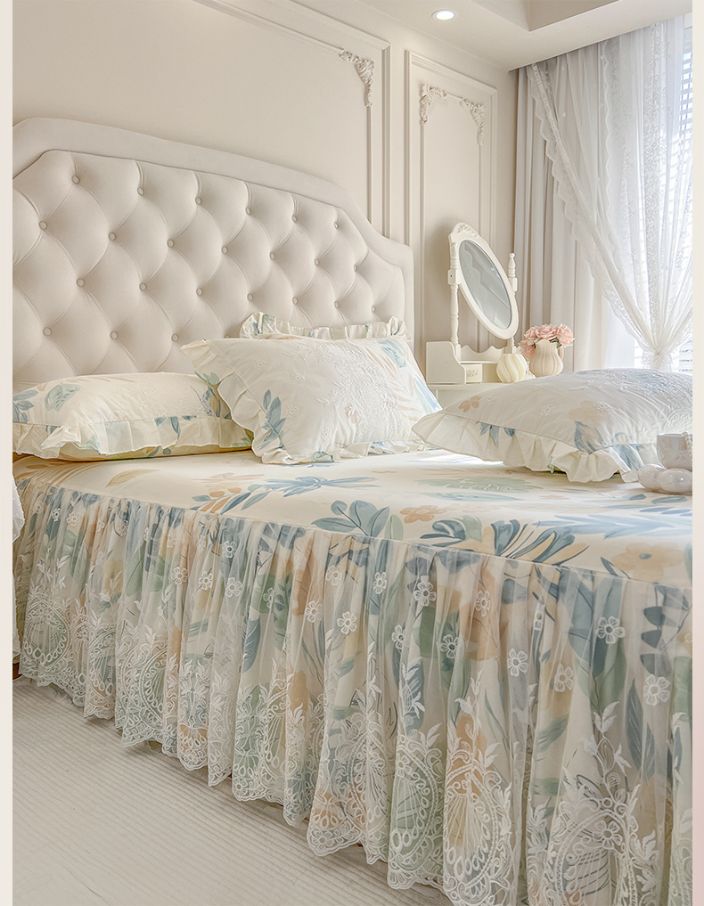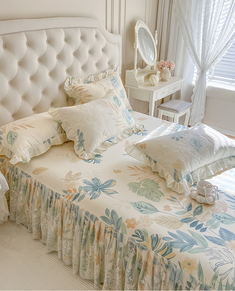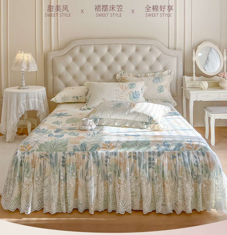 (总)恋尚 2025新款印花竹节纱床笠款床裙四件套(四件套控价220起),春野,花浅,花悦,莫婷,秋茉,甜梦