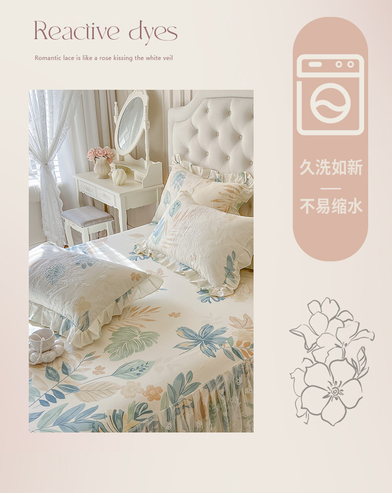 (总)恋尚 2025新款印花竹节纱床笠款床裙(床裙控价110元起),春野,花浅,花悦,莫婷,秋茉,甜梦