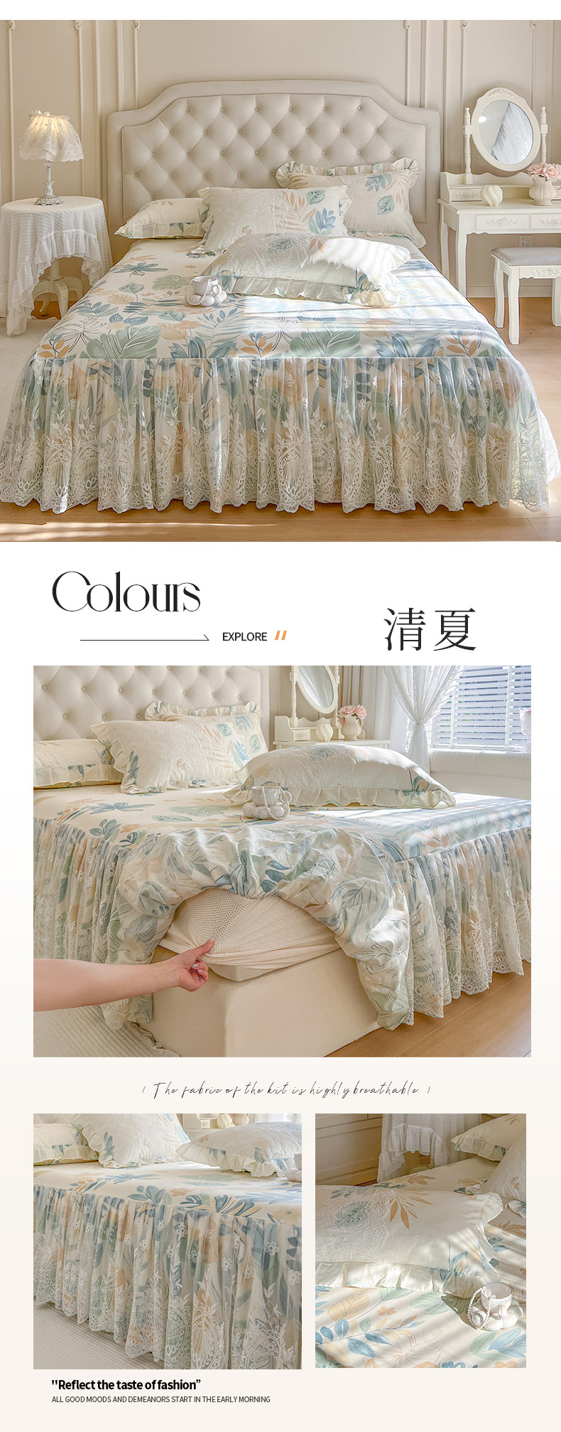 • 91家纺网 家纺一手货源 找家纺 恋尚 2026新款全棉印花床笠式床裙(控价135起) 清夏