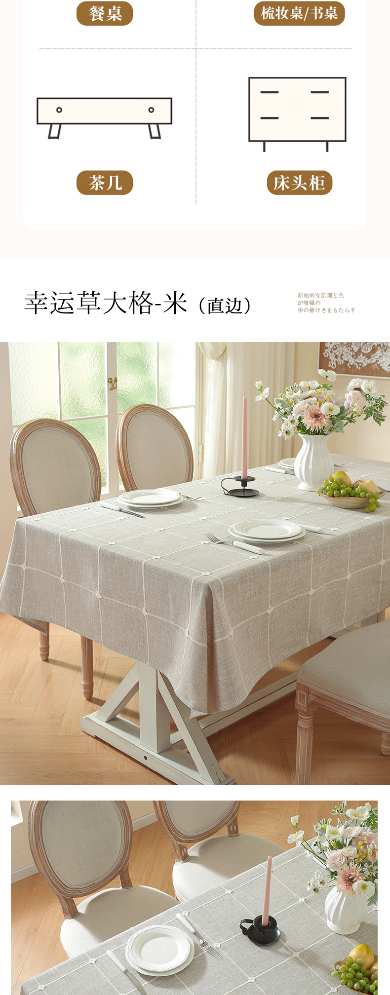 当前位置: 91家纺网 > 商品网购 > 居家布艺 > 餐桌布 > 南通大梧纺织 2026新款简约幸运草大格桌布 幸运草大格-灰(小穗边)