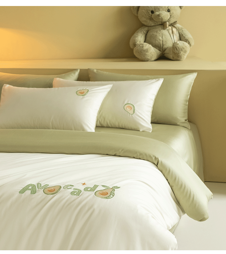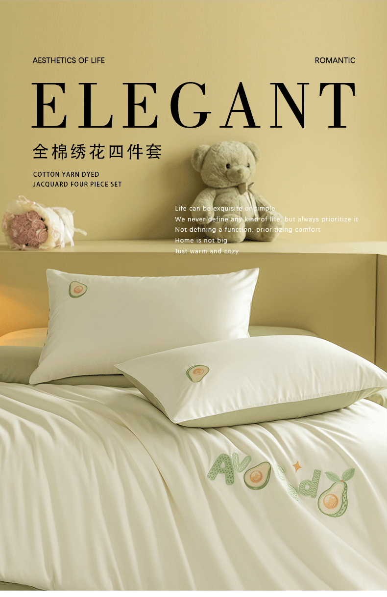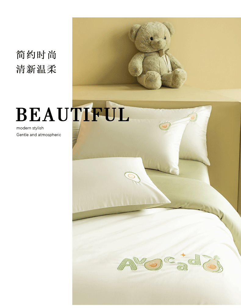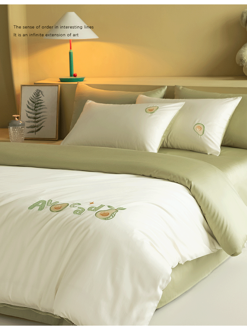 当前位置: 91家纺网 > 商品网购 > 床品套件 > 四件套 > 全棉普通四件套 > 618家纺 2026新款A类60支全棉纯棉绣花四件套-牛油果系列 牛油果米绿
