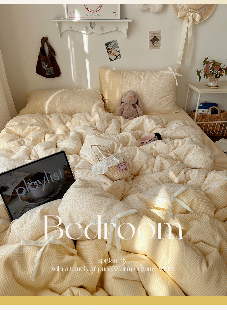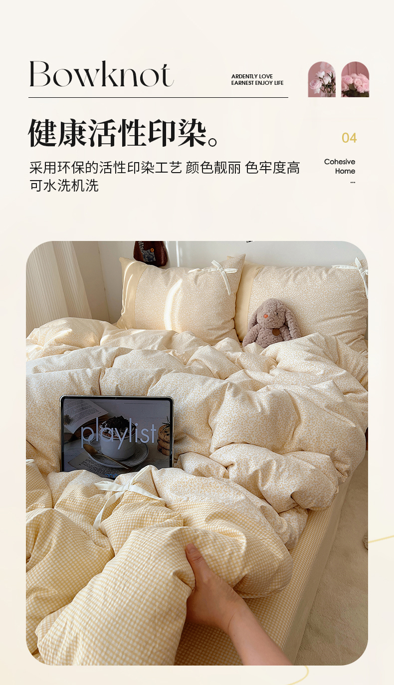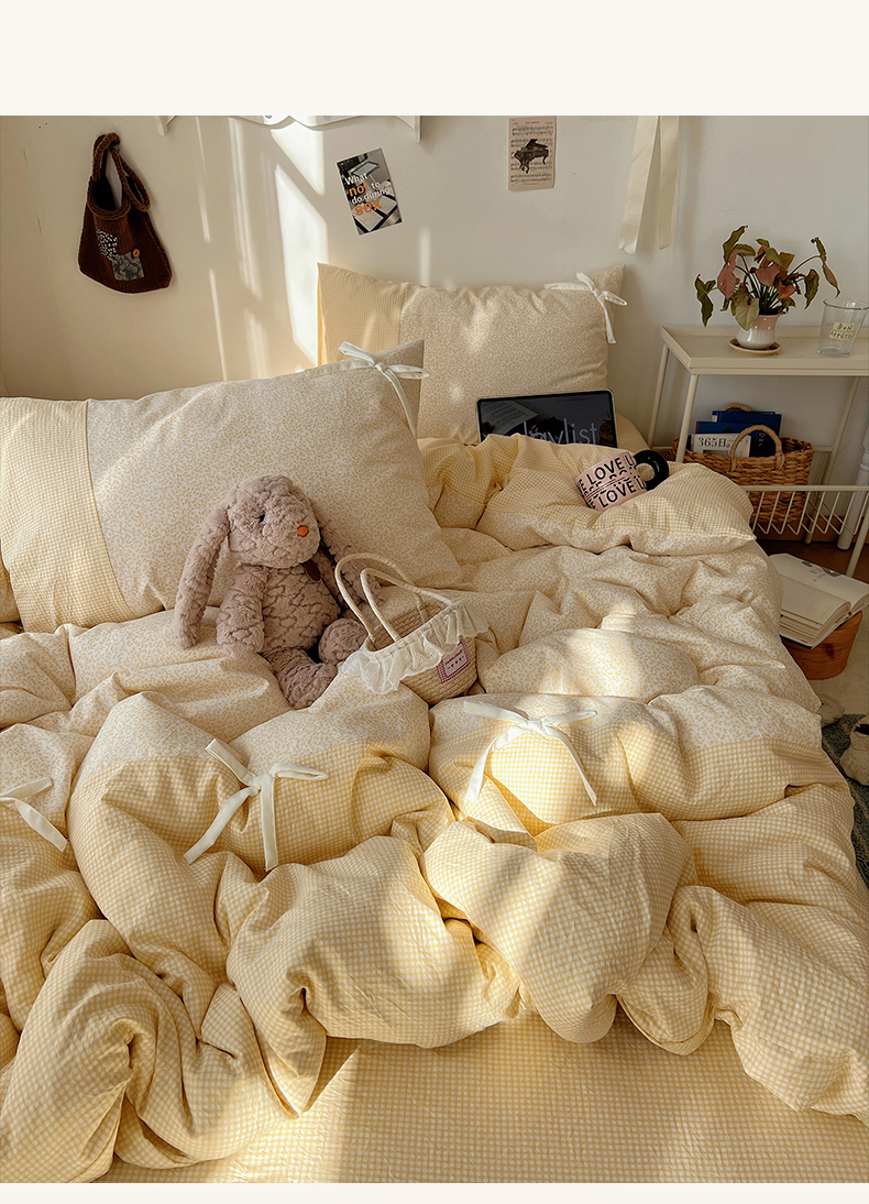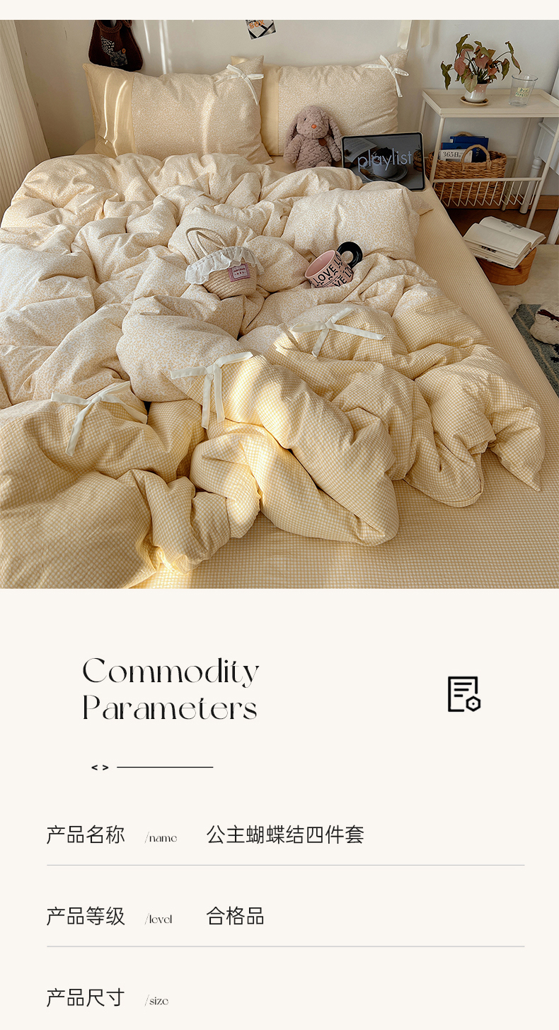 当前位置: 91家纺网 > 商品网购 > 床品套件 > 四件套 > 水洗棉四件套 > 沐芷 2026 【提供买家秀】公主风蝴蝶结A类古法水洗仿棉四件套床上用品三件套被套床单 公主蝴蝶结-黄