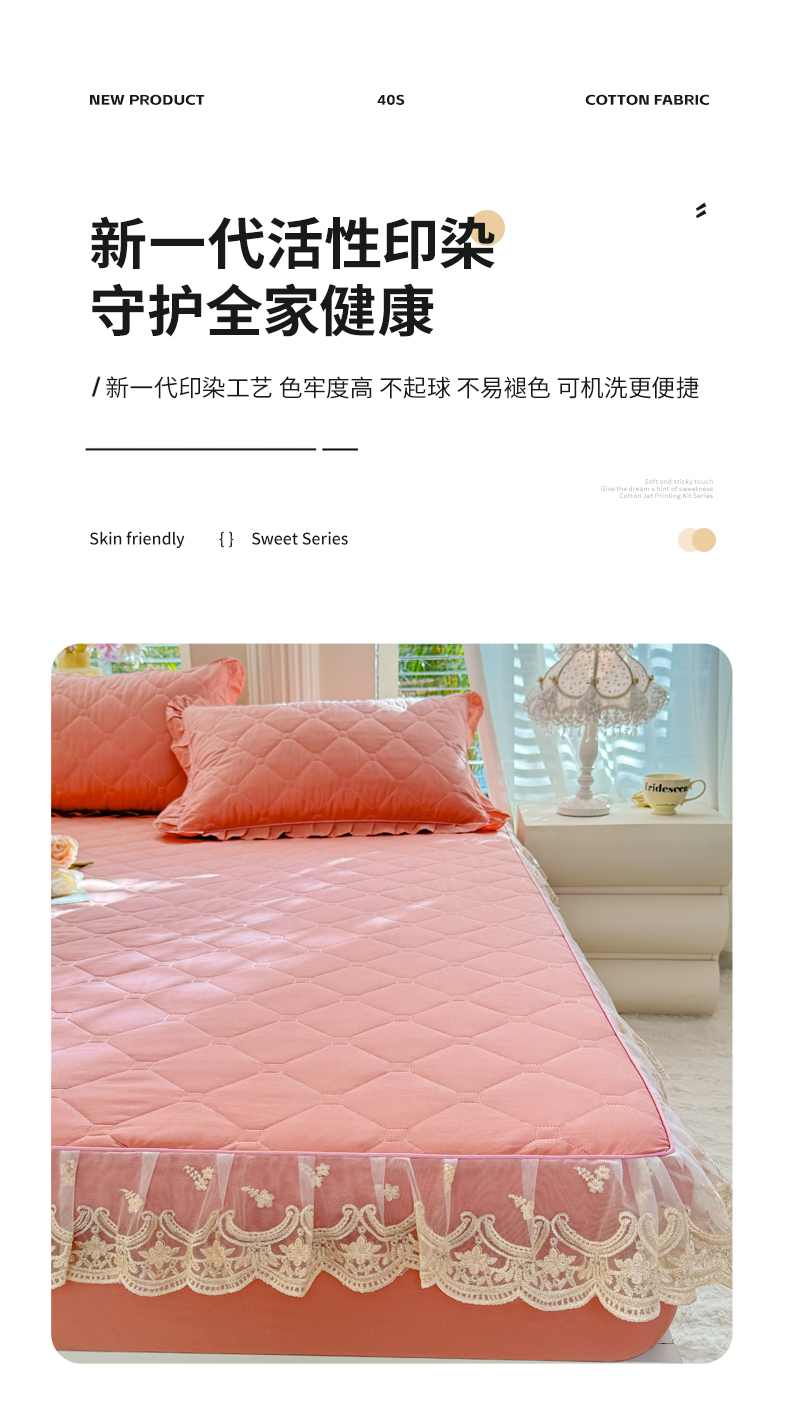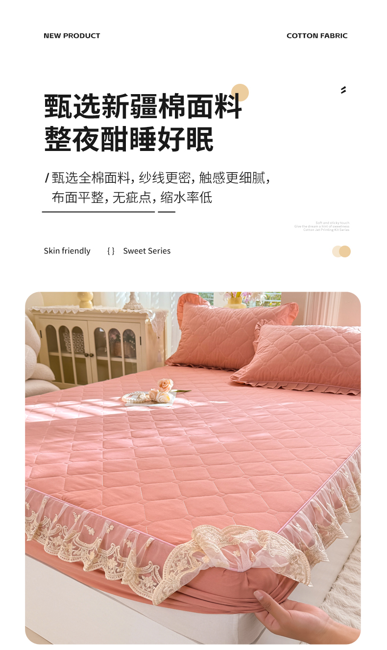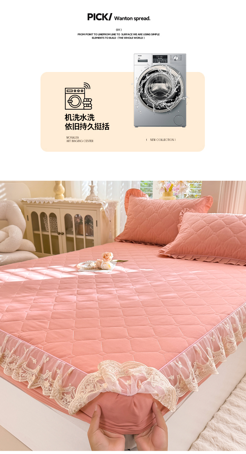 (总)美达家纺 2026新款13372全棉夹棉纯色床裙,玫瑰粉,木槿紫,浅砂灰,豆绿,高贵玉,灰紫,记忆粉,经典灰,魅力驼,米白,浅兰,绅士绿