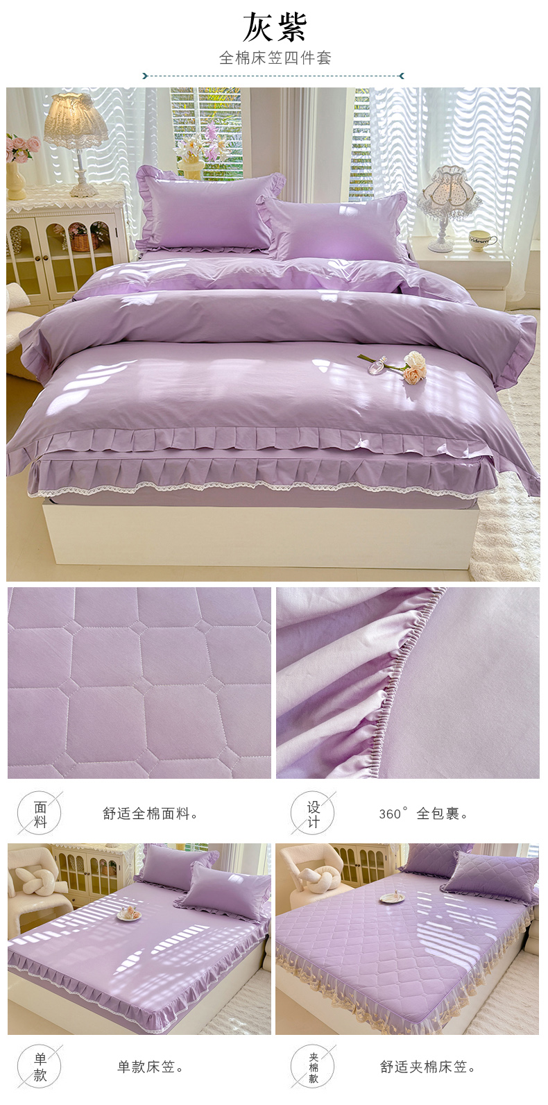 (总)美达家纺 2026新款13372全棉素色夹棉床笠,高贵玉,灰紫,经典灰,玫瑰粉,米白,木槿紫,浅兰,浅砂灰