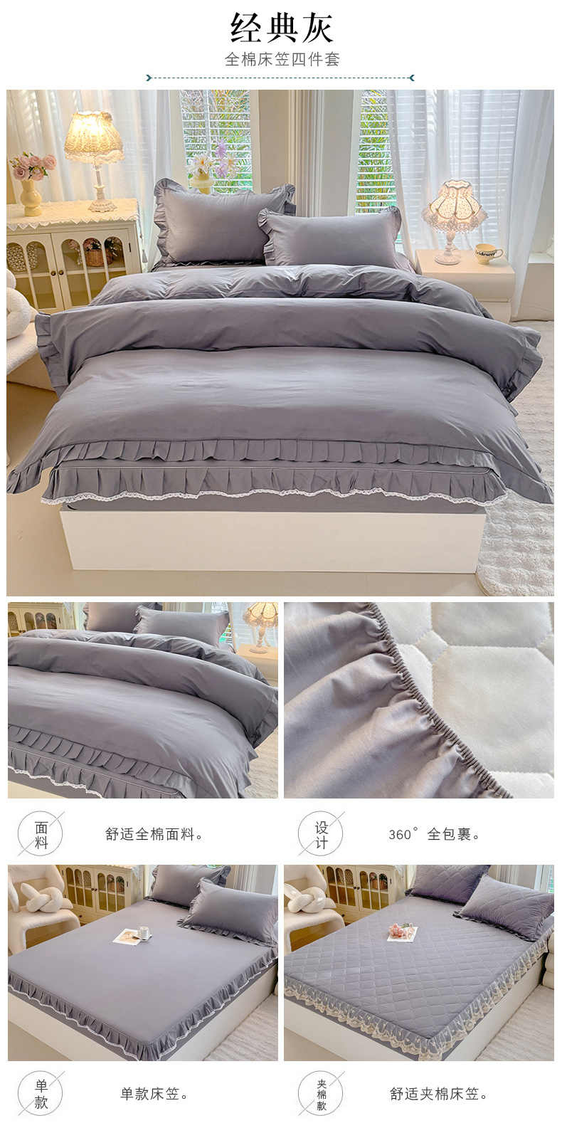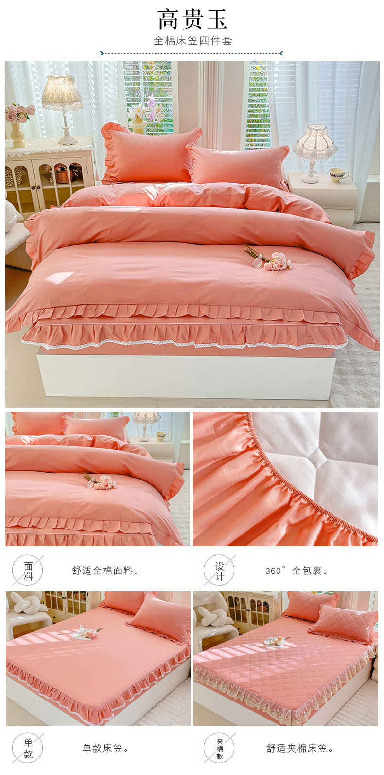 (总)美达家纺 2026新款13372全棉夹棉纯色床裙四件套,玫瑰粉,木槿紫,浅砂灰,豆绿,高贵玉,灰紫,记忆粉,经典灰,魅力驼,米白,浅兰,绅士绿
