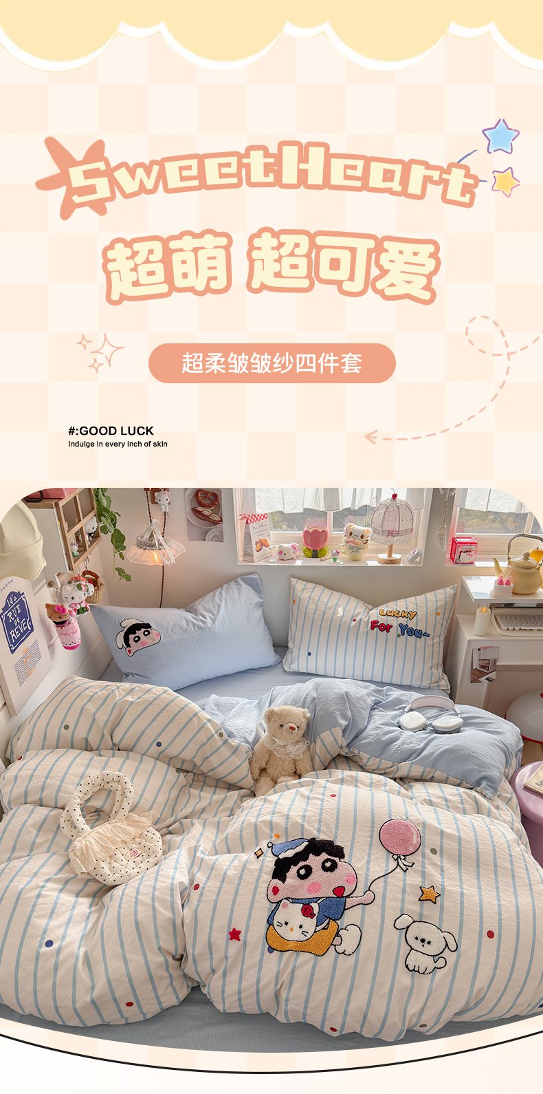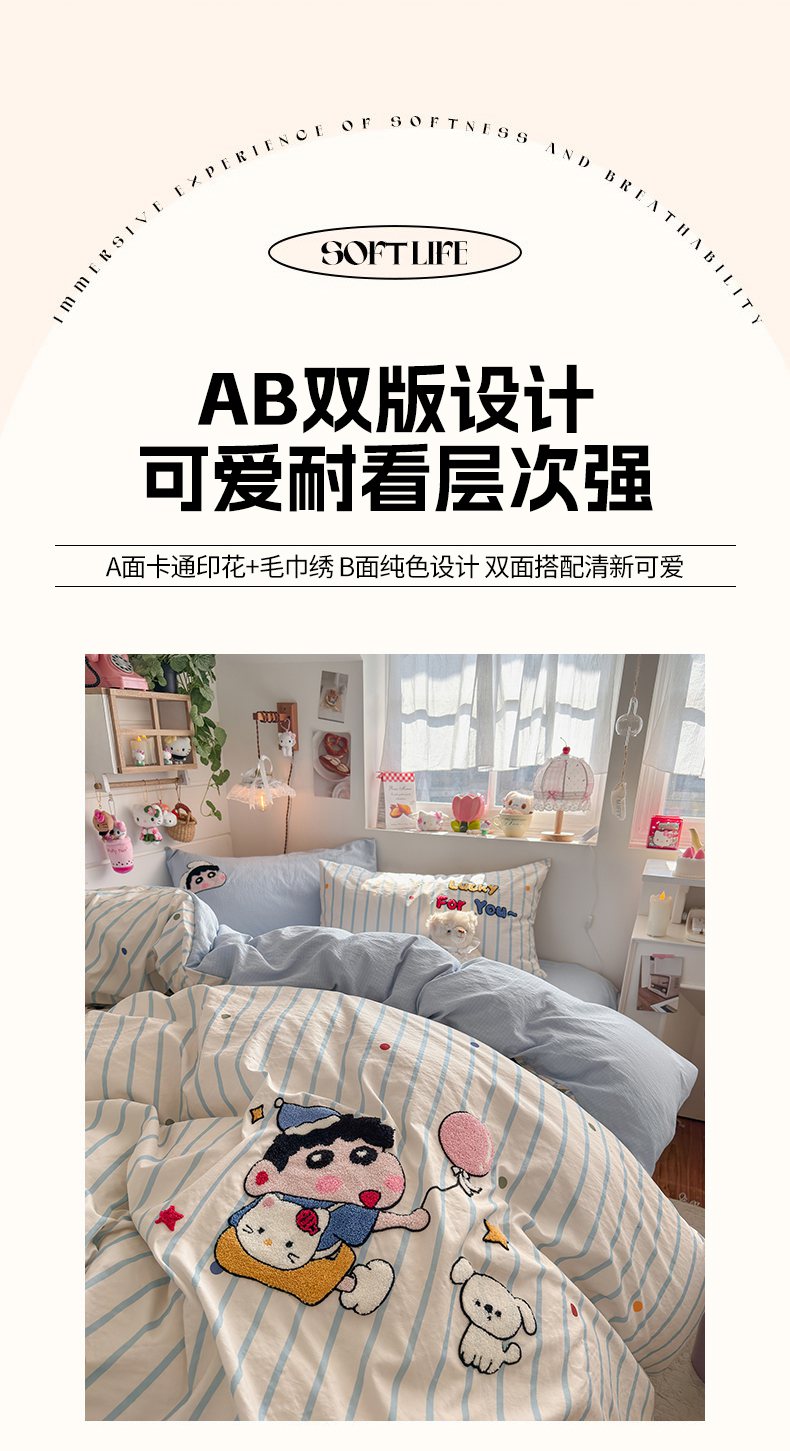 当前位置: 91家纺网 > 商品网购 > 床品套件 > 四件套 > 毛巾绣四件套 > 海岛哥哥 2026新款皱皱纱毛巾绣四件套-含买家秀 调皮小新