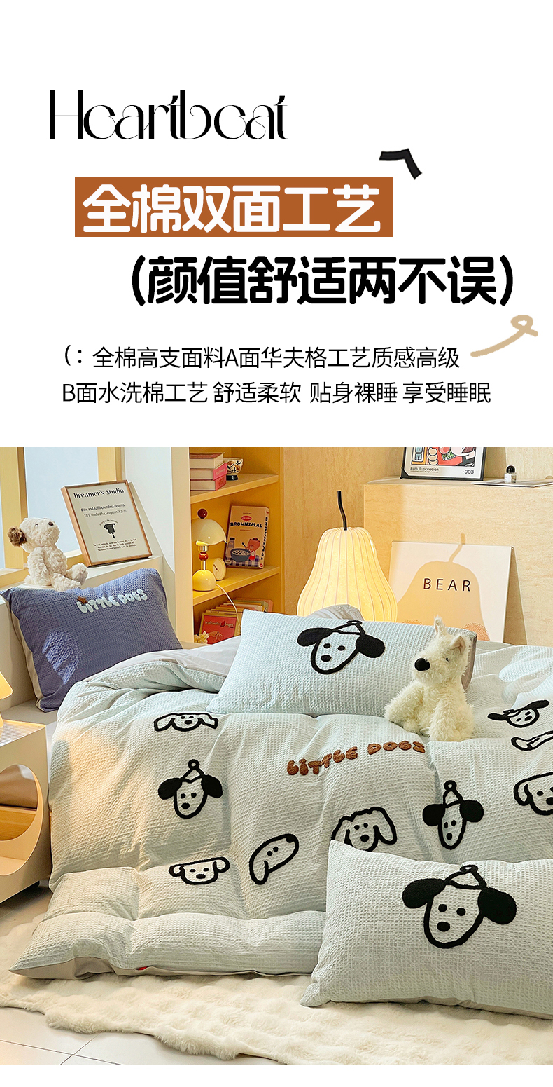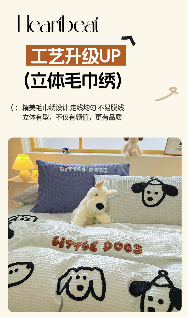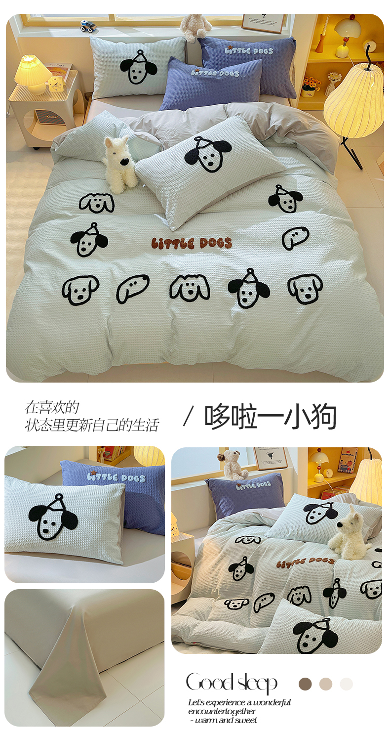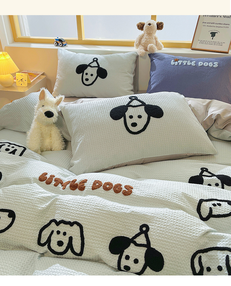 当前位置: 91家纺网 > 商品网购 > 床品套件 > 四件套 > 全棉普通四件套 > 炫拼家纺 2026新款A类全棉纯棉华夫格毛巾绣B版40支纯棉水洗棉四件套-哆啦系列 哆啦-小狗