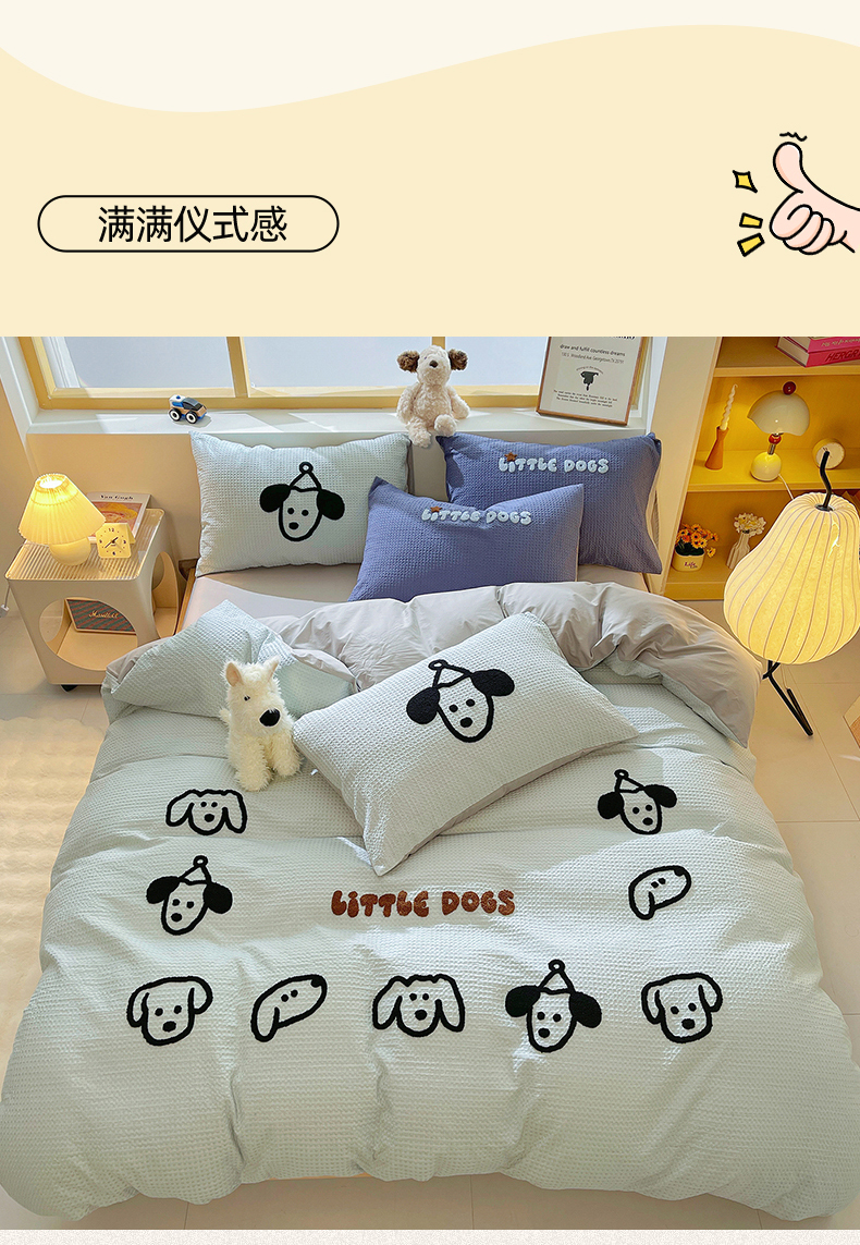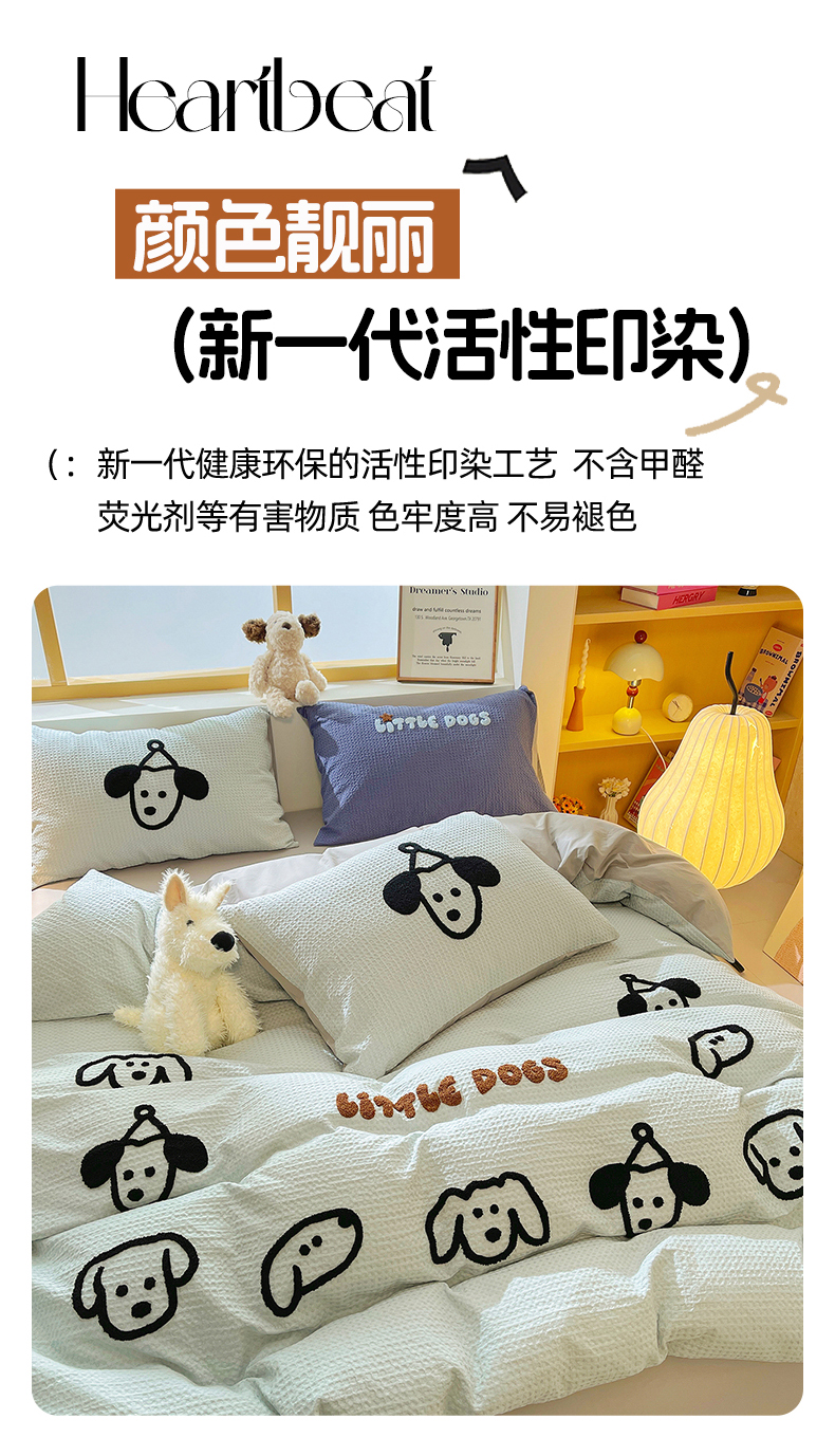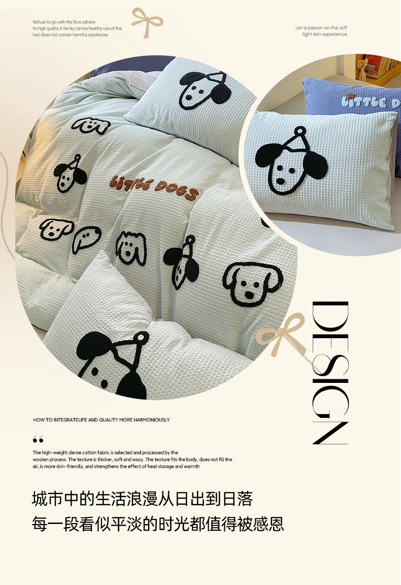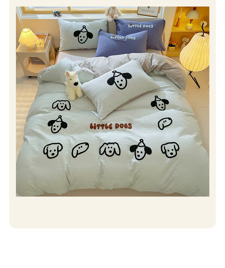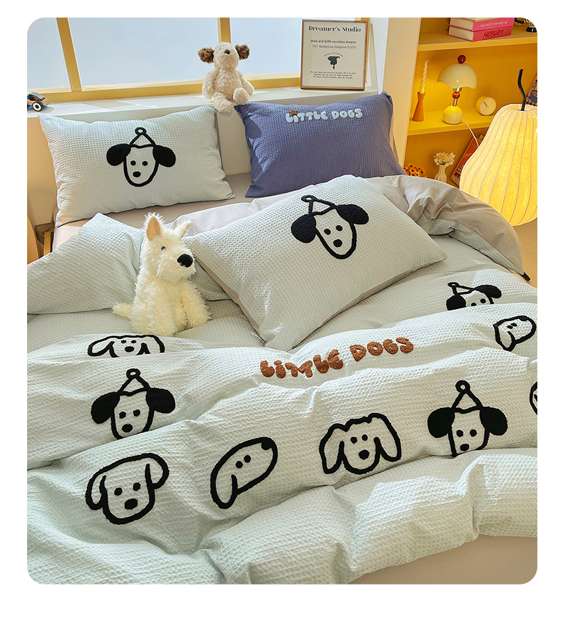 当前位置: 91家纺网 > 商品网购 > 床品套件 > 四件套 > 全棉普通四件套 > 炫拼家纺 2026新款A类全棉纯棉华夫格毛巾绣B版40支纯棉水洗棉四件套-哆啦系列 哆啦-小狗