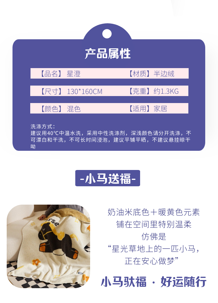 商品名称:(总)暖绵绵家纺 2026新款半边绒小马针织毯-星澄(本款券后/折后零售价不得低于173元)