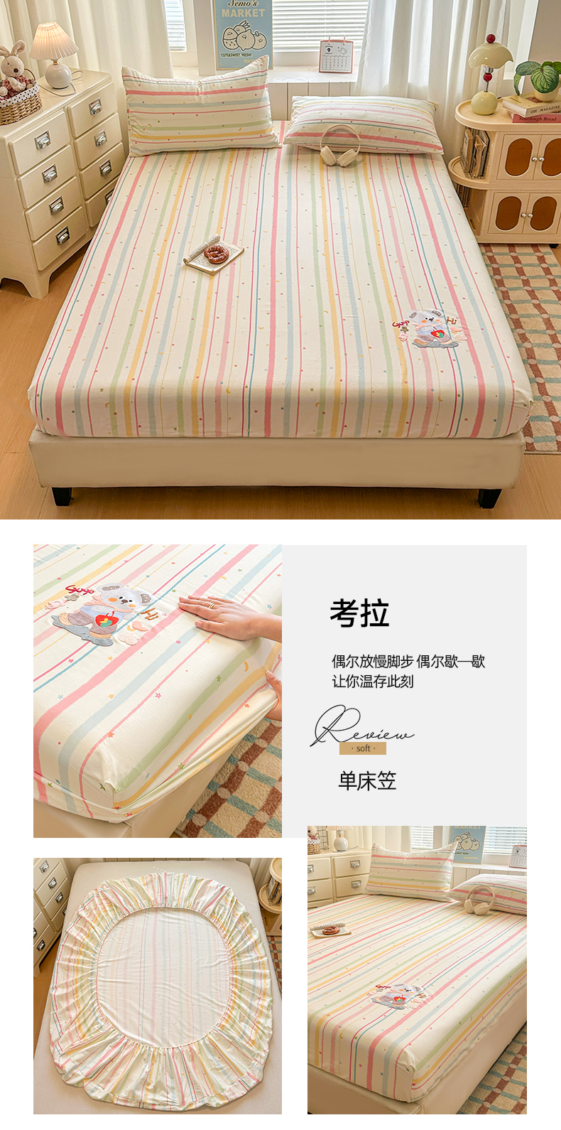 • 91家纺网 家纺一手货源 找家纺 (总)易辰美 2026新款13372全棉纯棉印花卡通床笠单品床笠单件单床笠,叉鱼小狗,星星恐龙,小飞象,三只兔子,趴趴熊,考拉,卡皮巴拉,红蓝熊猫,月亮女孩(二),月亮女孩(一)