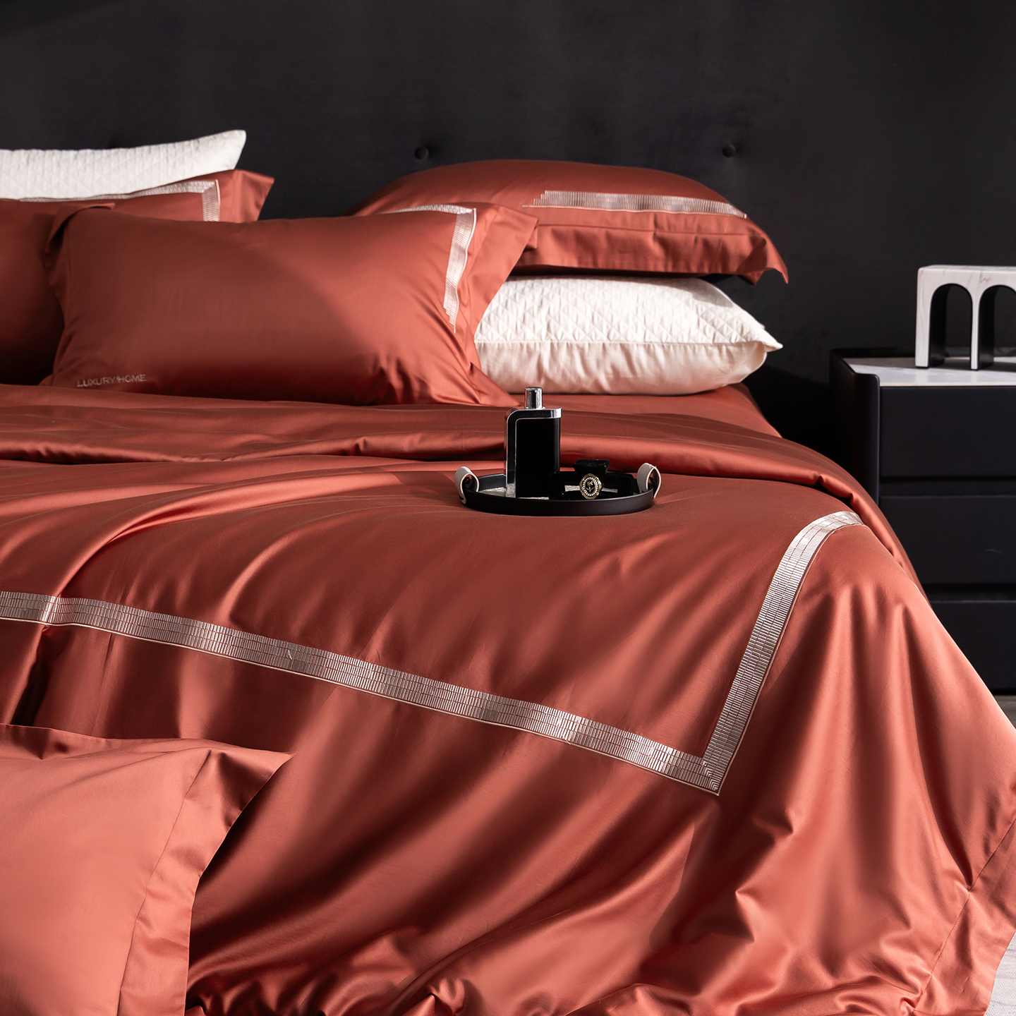 时亿家居 2026新款100支全棉纯棉绣花四件套-至简逸品系列 逸品-红