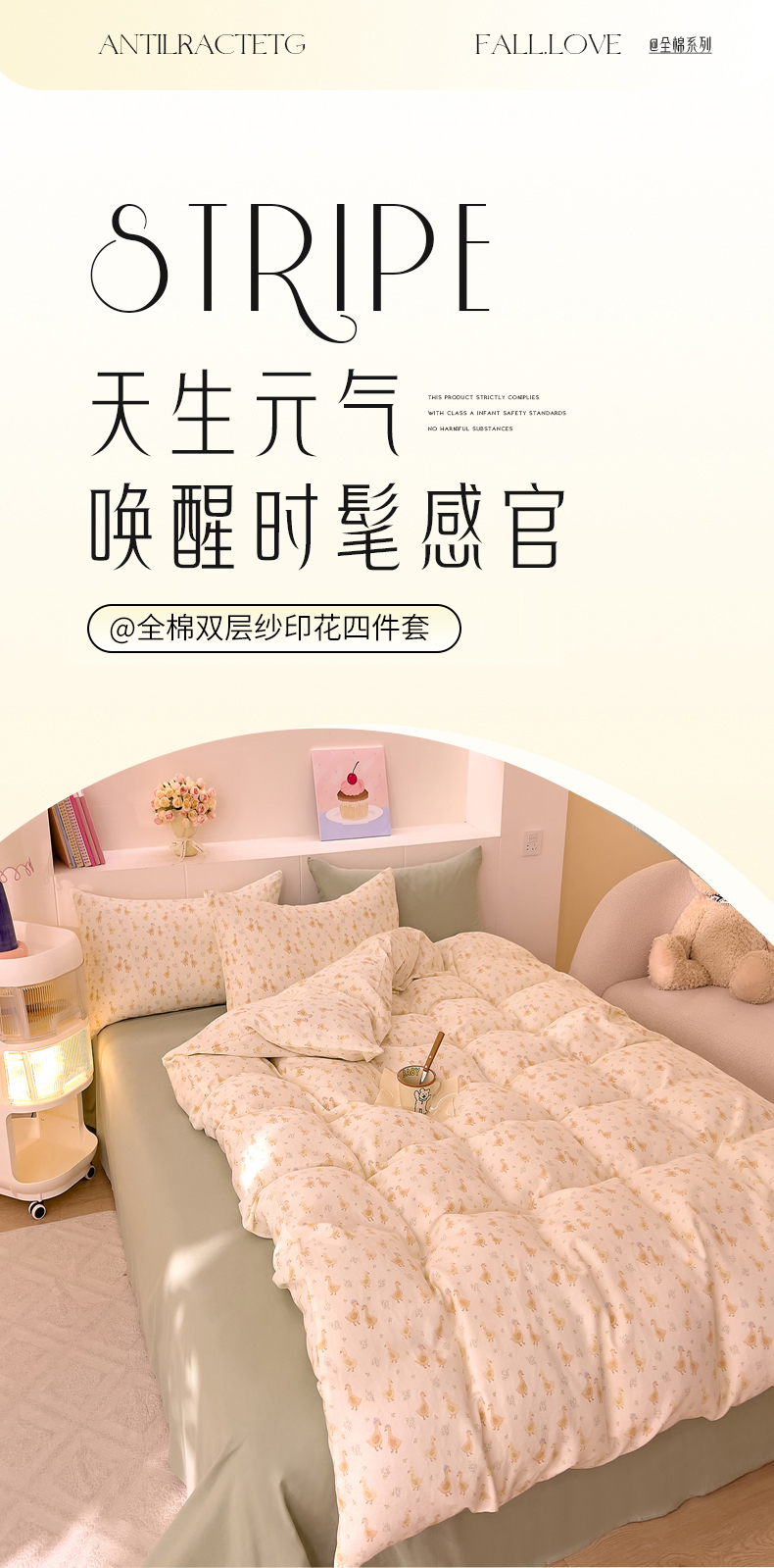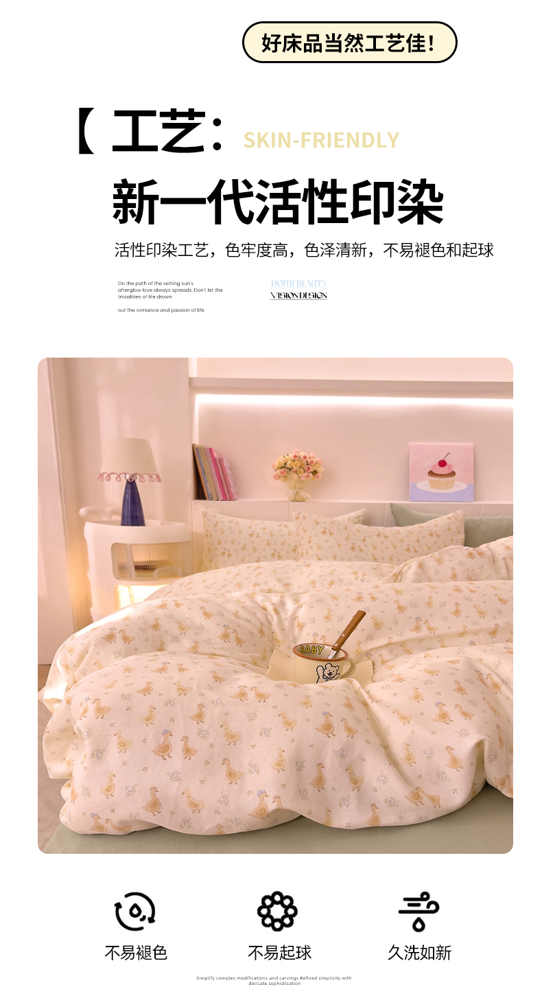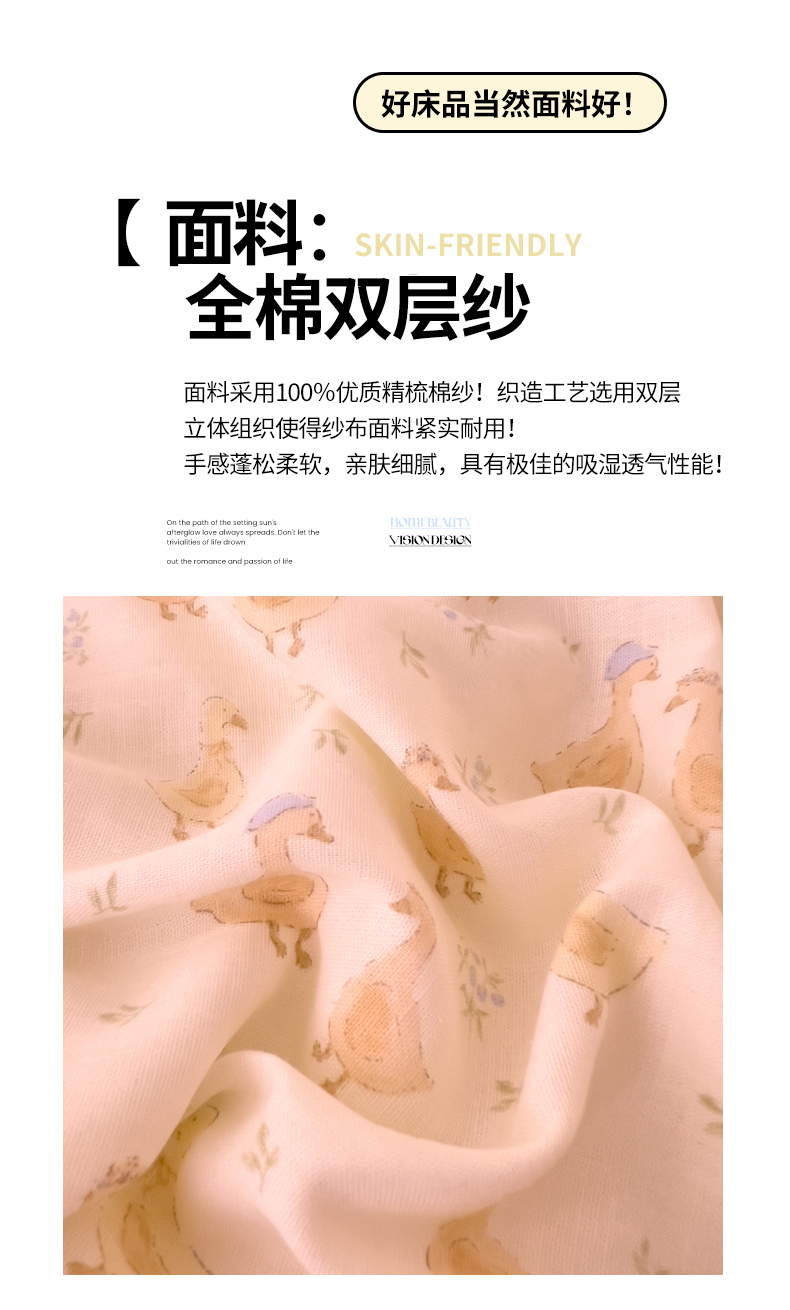 当前位置: 91家纺网 > 商品网购 > 床品套件 > 四件套 > 双层纱四件套 > DoDo 兜兜 2026新款全棉纯棉小温暖双层纱四件套【可定做尺寸】快乐鸭