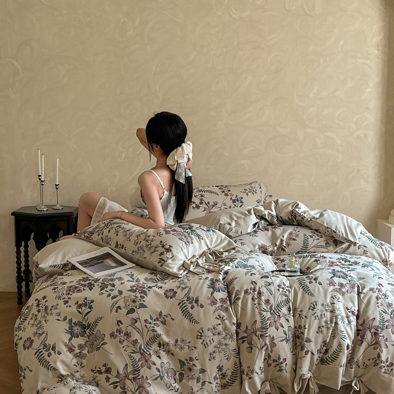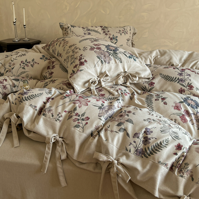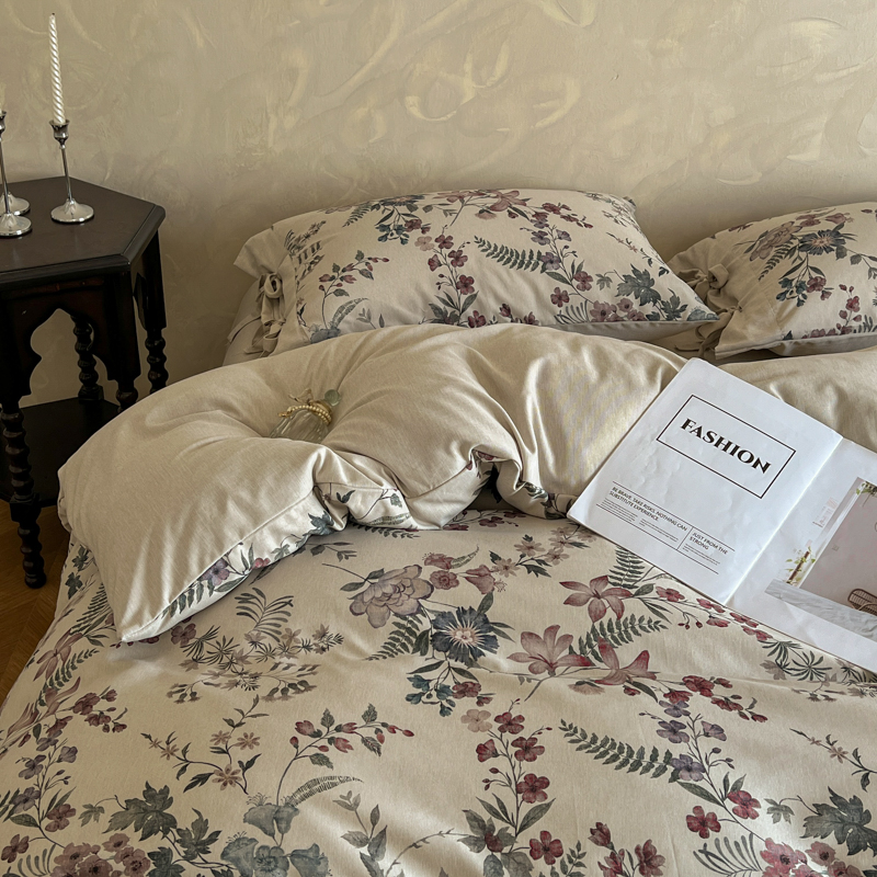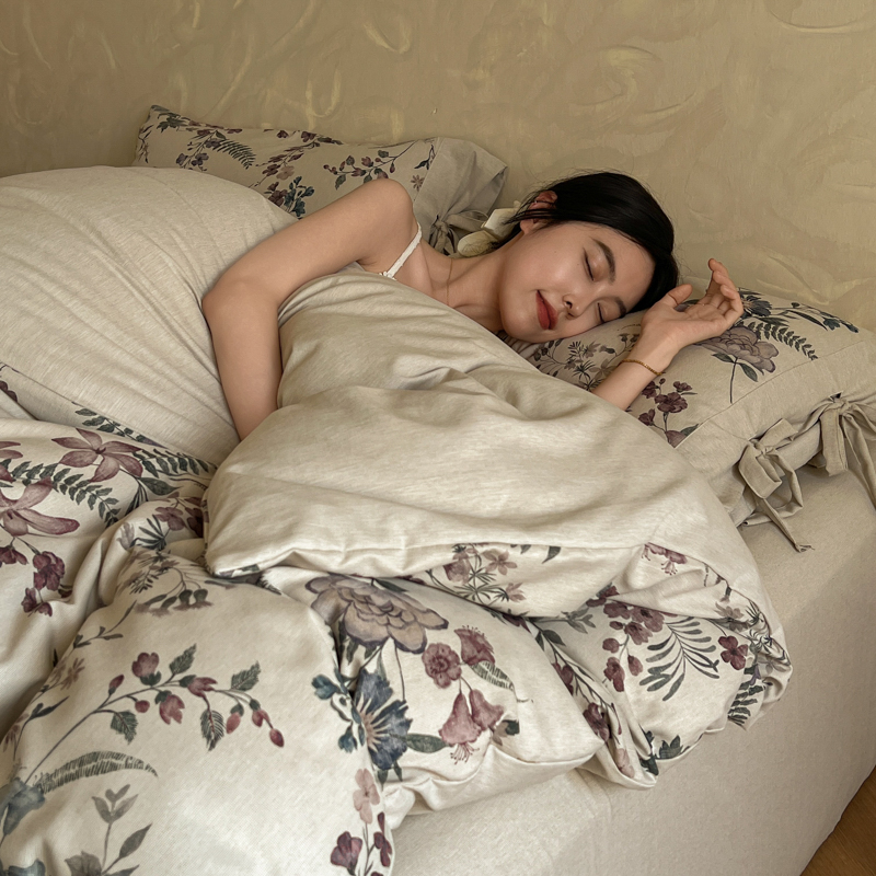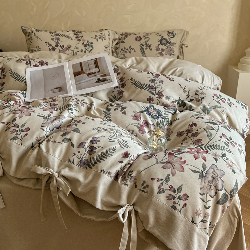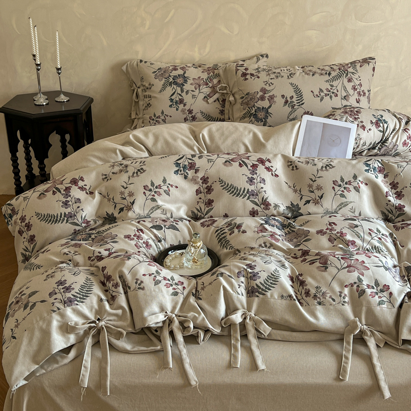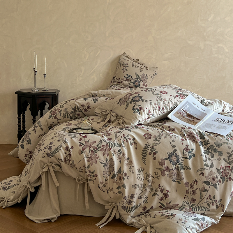 (总)漫仙阁家纺 2025新款加厚高克重原麻复古风印花四件套,布袋子,粉黛,花蕾-咖,花蕾-绿,金枝玉叶,锦簇,盛夏,素锦,向阳花开,一抹香,绽放