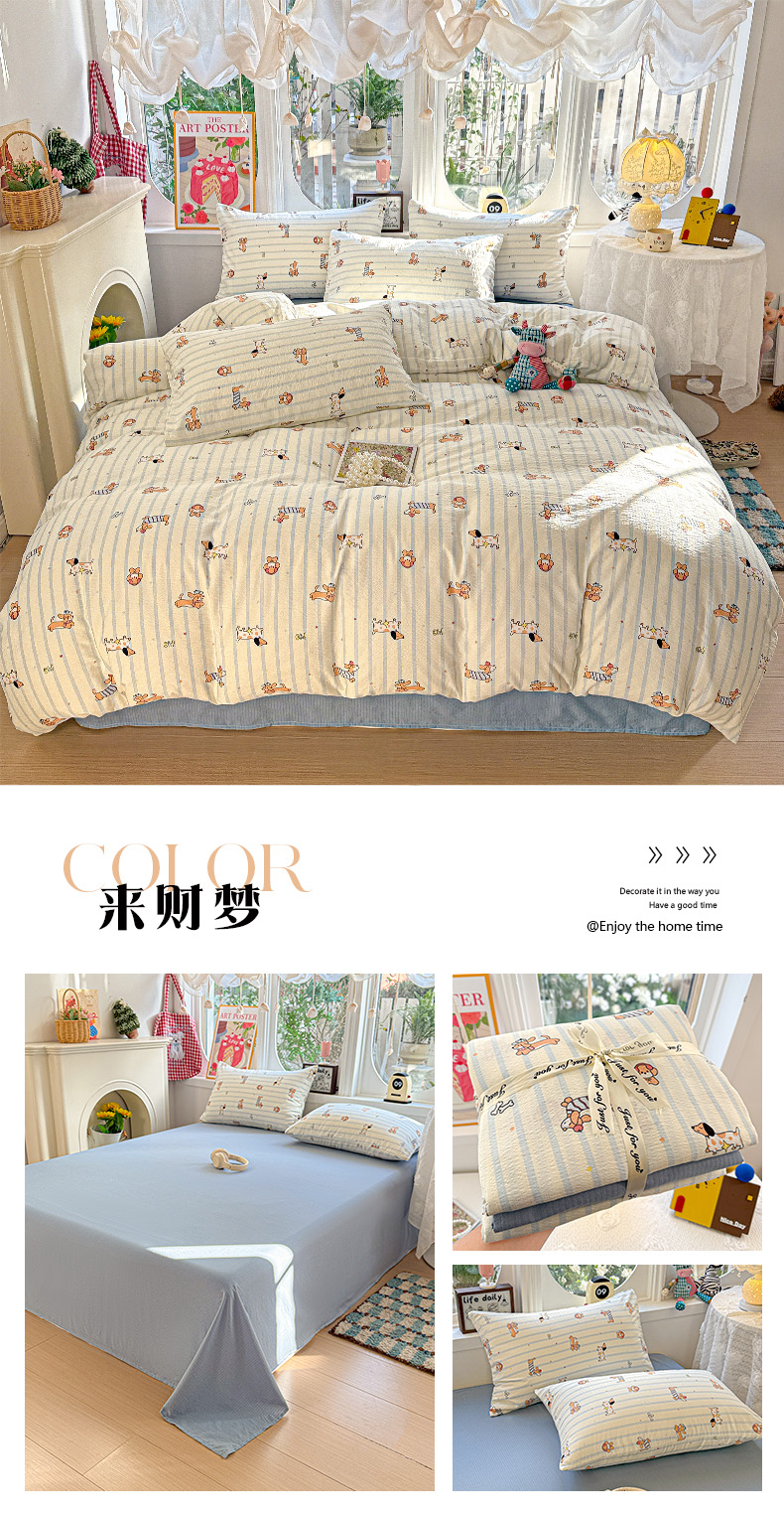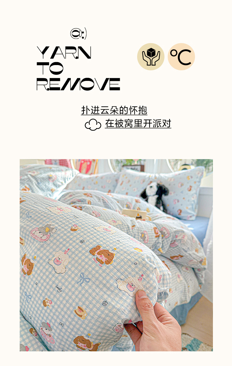 (总)朵朵家纺 2026新款云感木棉皱皱纱双层纱印花四件套,星星人,安琪拉,豹纹KT,北半球,波点草莓,春野集,蛋糕喵,繁星春水,好朋友,来财梦,兰溪,萌宠派对,芊芊花语,森林乐园,森林密语,甜茶,小新e族,小樱桃