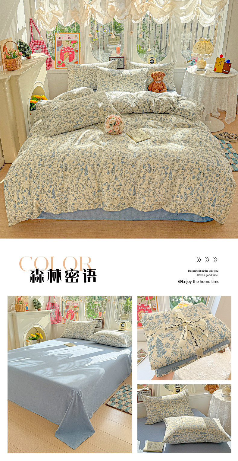 (总)朵朵家纺 2026新款云感木棉皱皱纱双层纱印花四件套,星星人,安琪拉,豹纹KT,北半球,波点草莓,春野集,蛋糕喵,繁星春水,好朋友,来财梦,兰溪,萌宠派对,芊芊花语,森林乐园,森林密语,甜茶,小新e族,小樱桃
