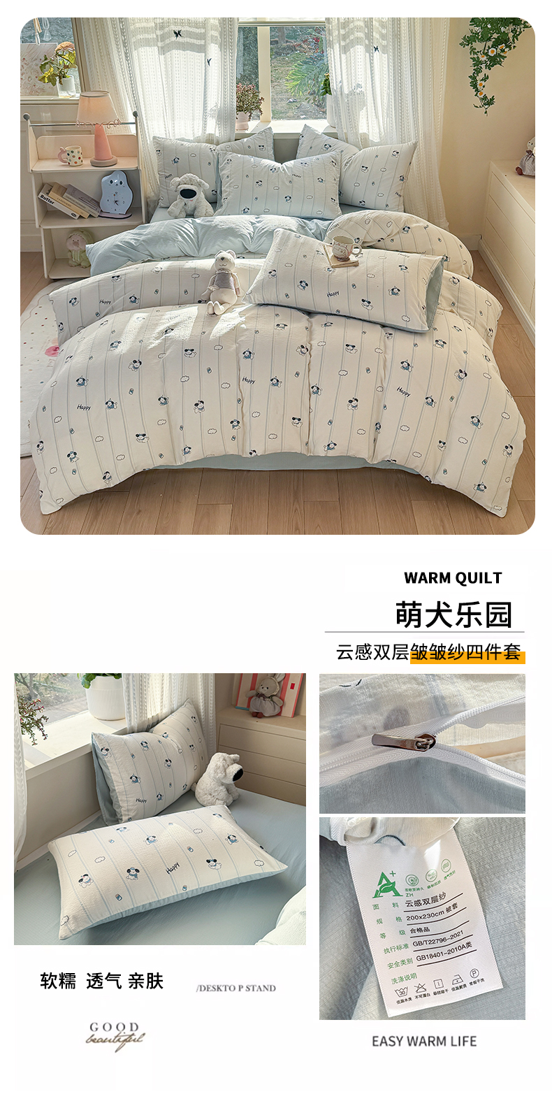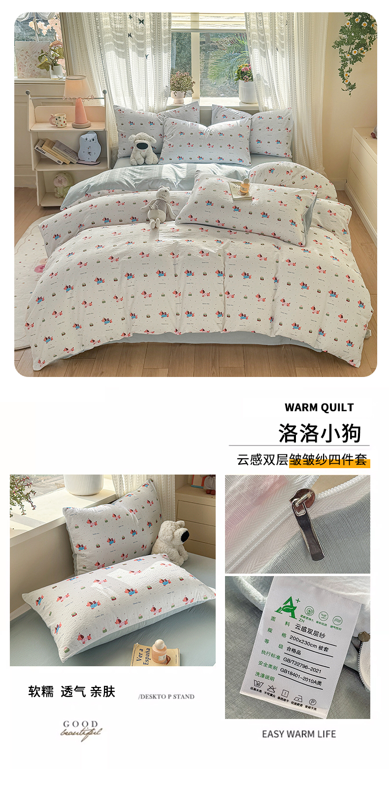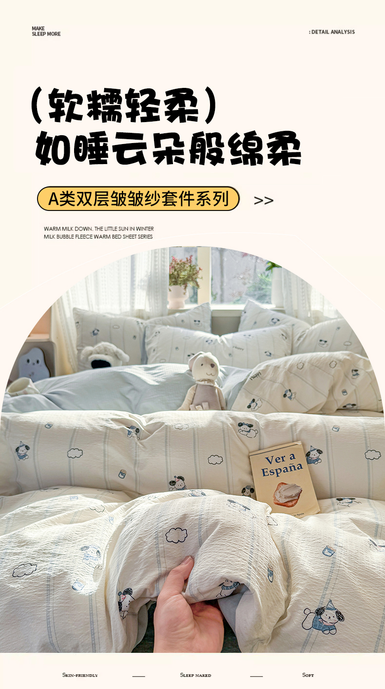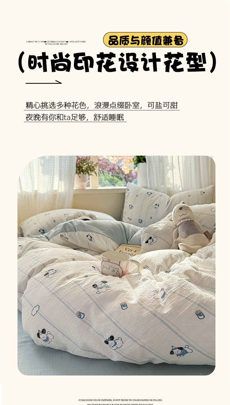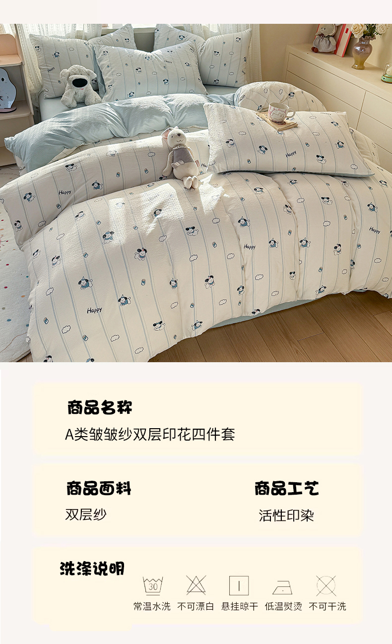 当前位置: 91家纺网 > 商品网购 > 床品套件 > 四件套 > 双层纱四件套 > 丽美人家纺 2026新款A类皱皱纱双层印花四件套 萌犬乐园