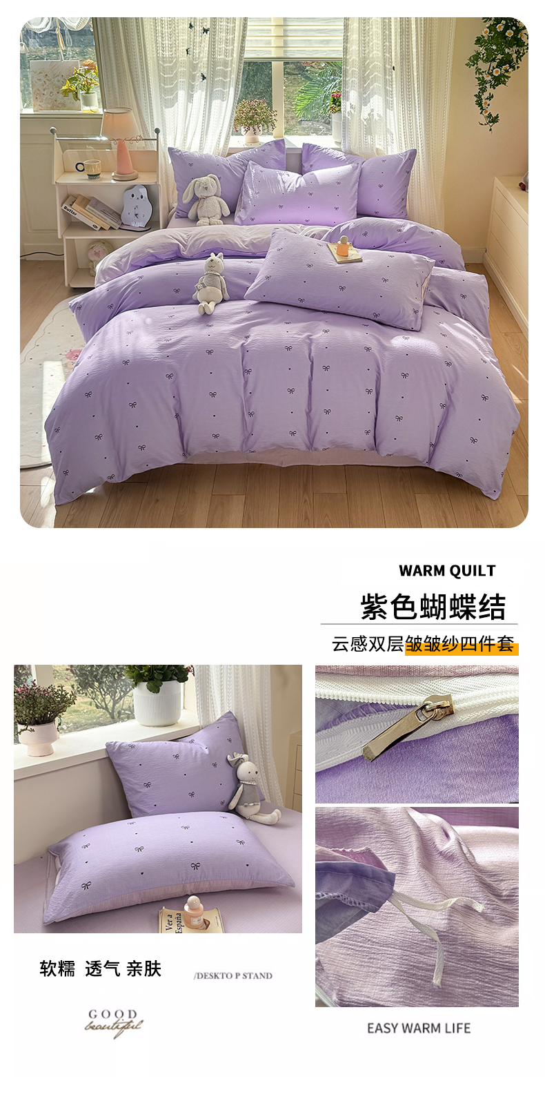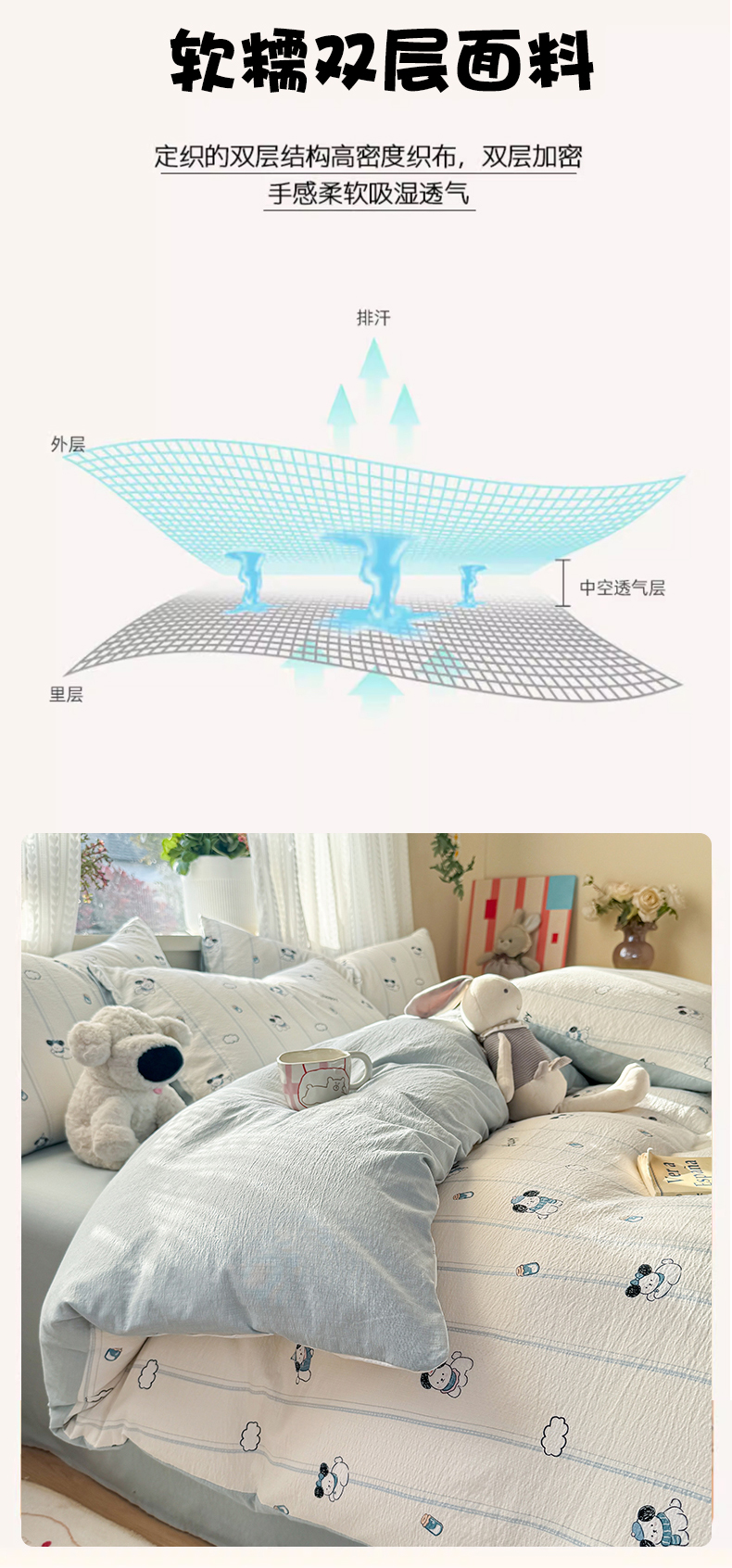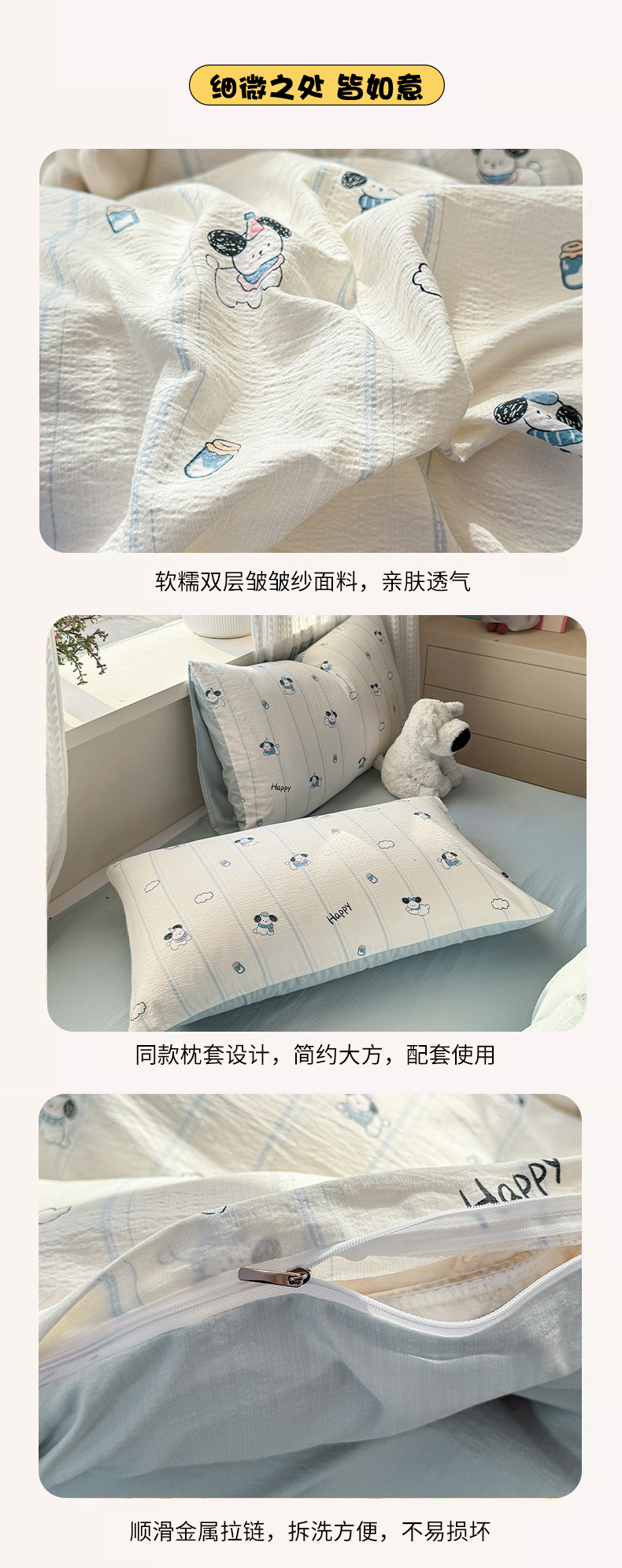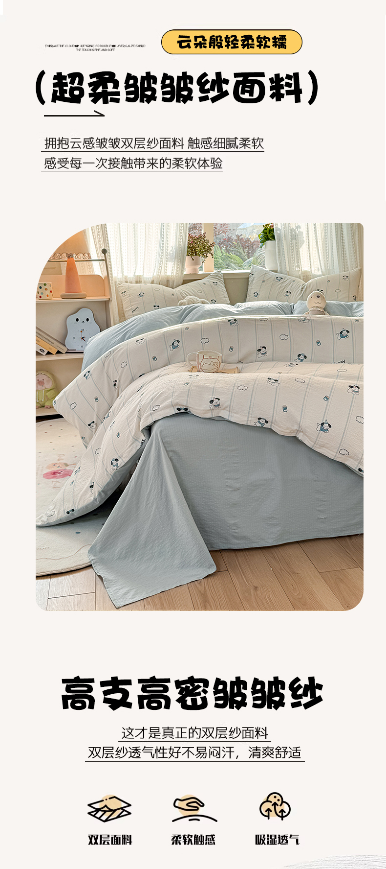 当前位置: 91家纺网 > 商品网购 > 床品套件 > 四件套 > 双层纱四件套 > 丽美人家纺 2026新款A类皱皱纱双层印花四件套 萌犬乐园