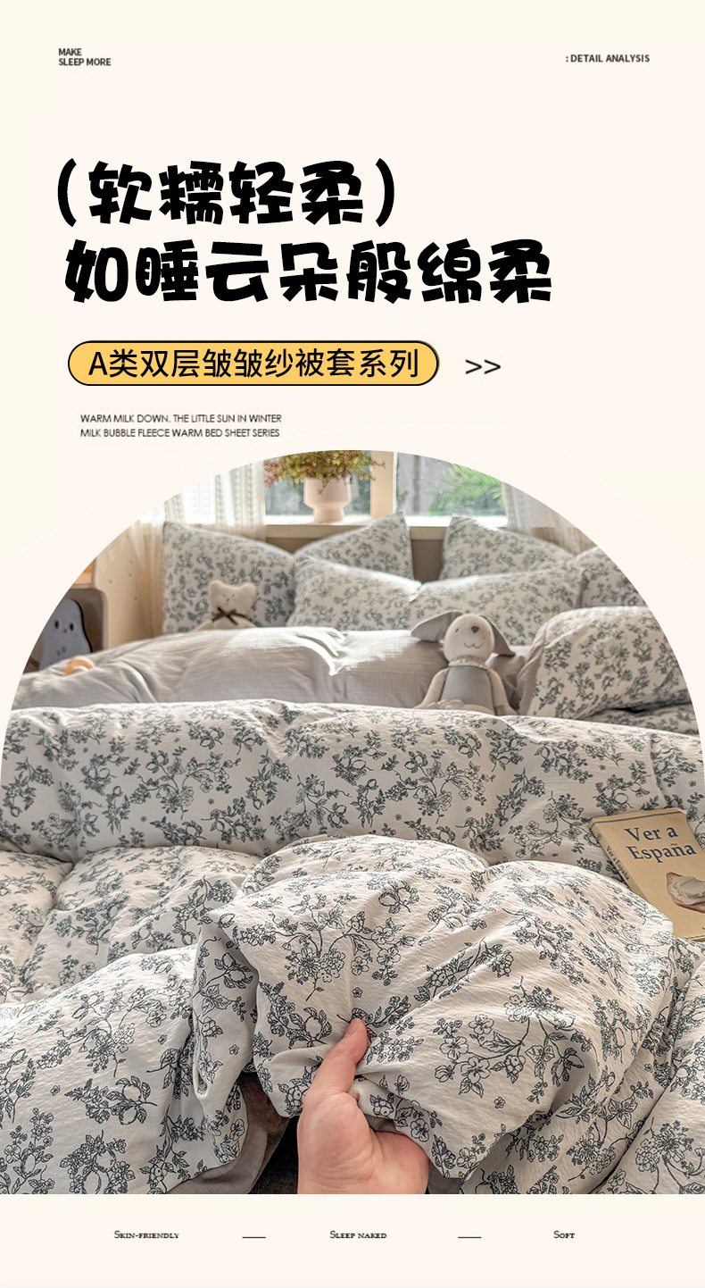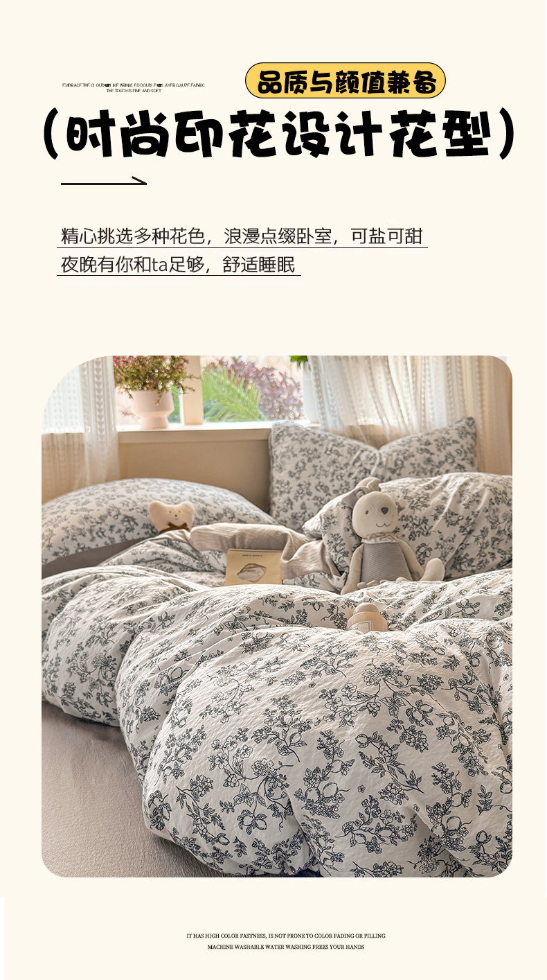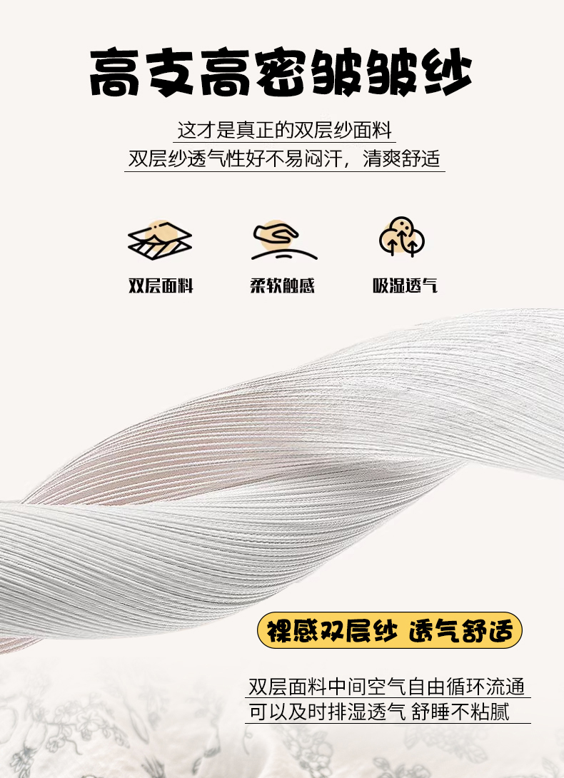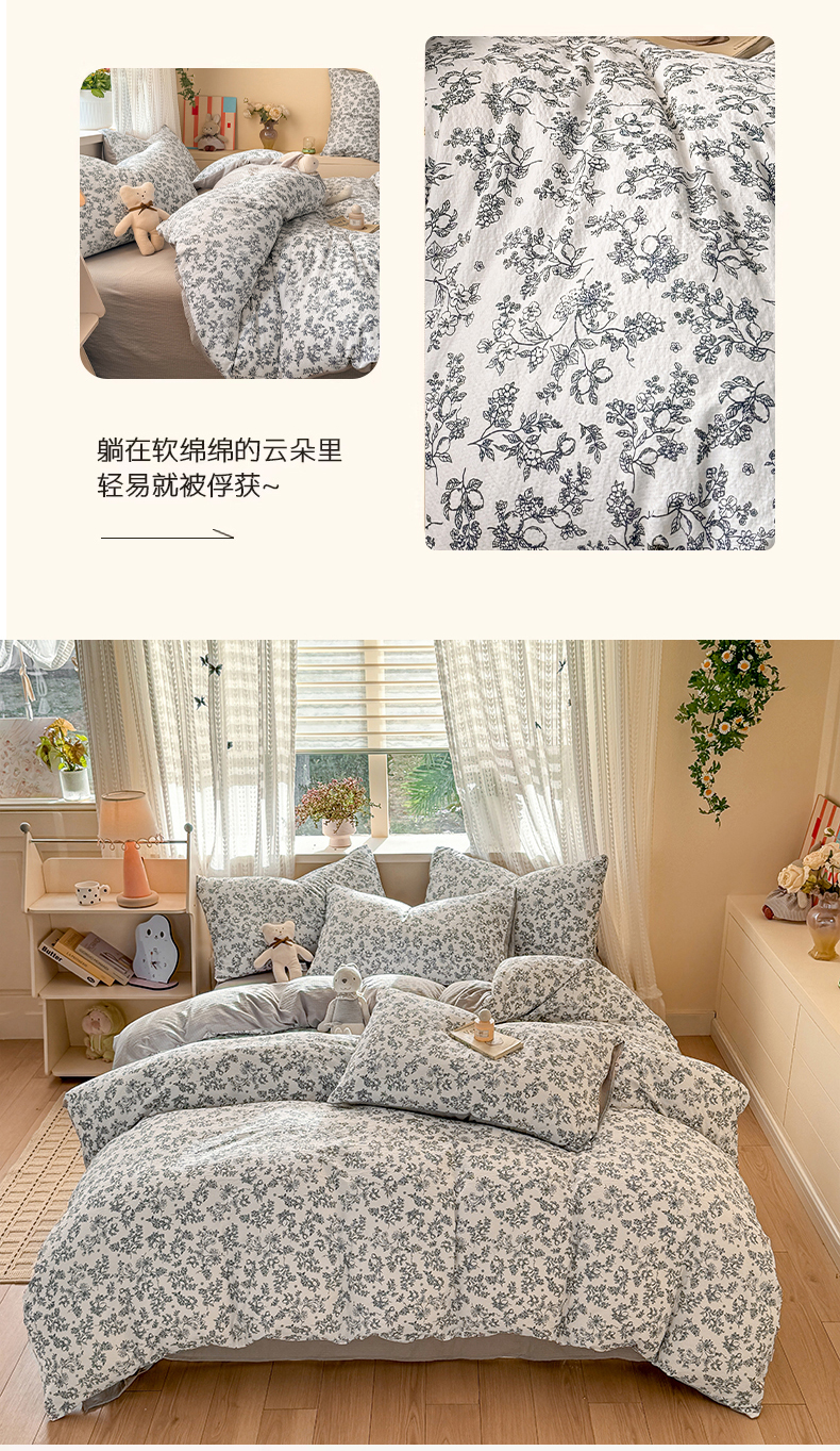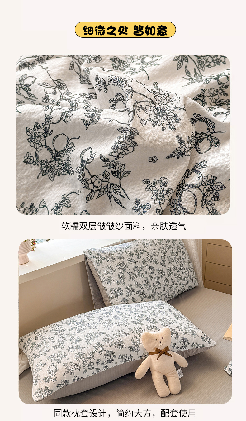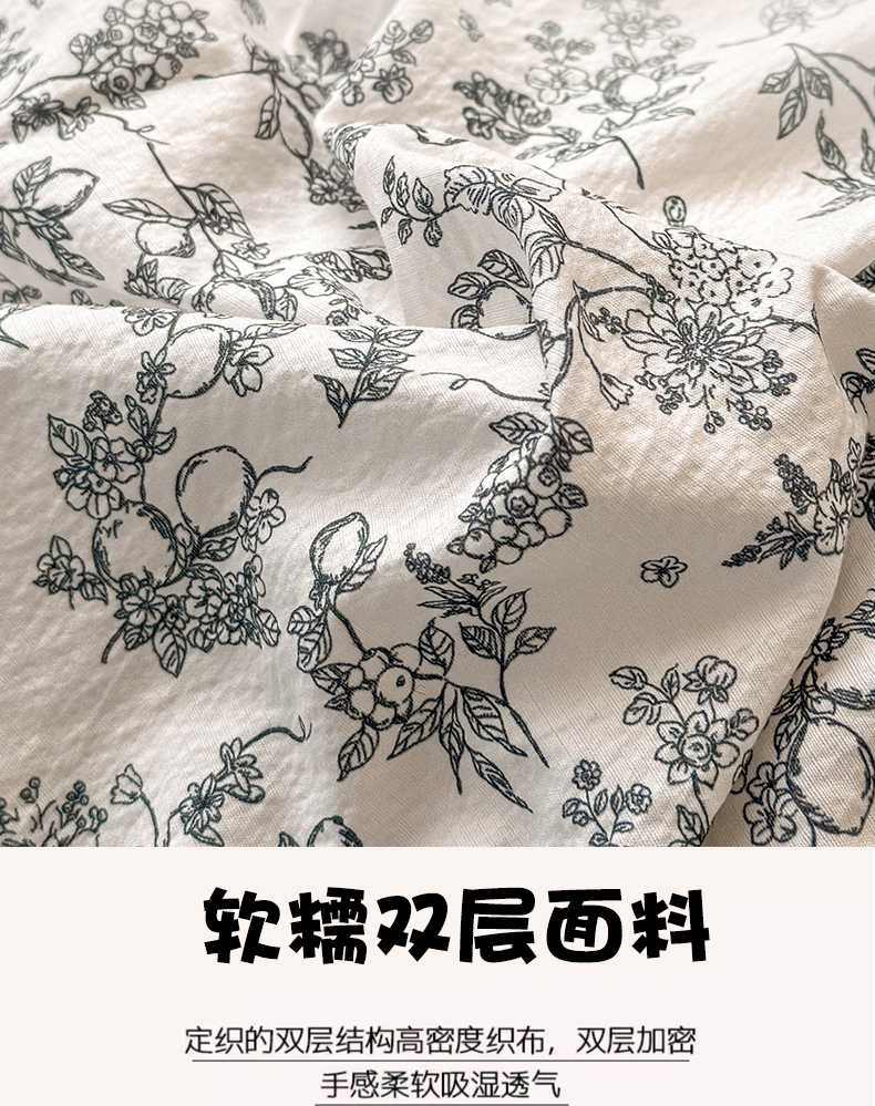 商品名称:丽美人家纺 2026新款A类皱皱纱双层印花单被套 BT花开漫漫