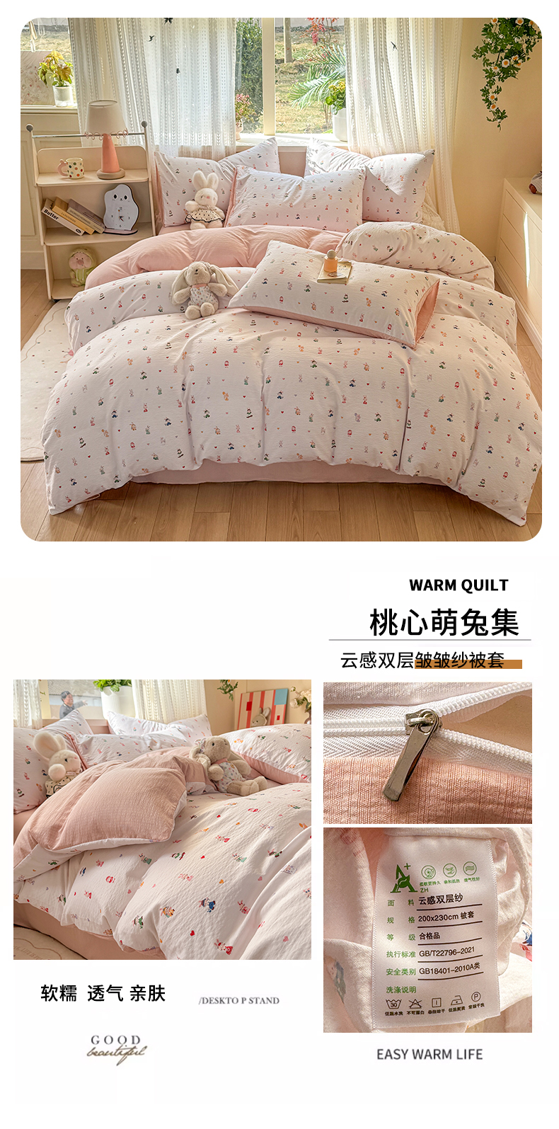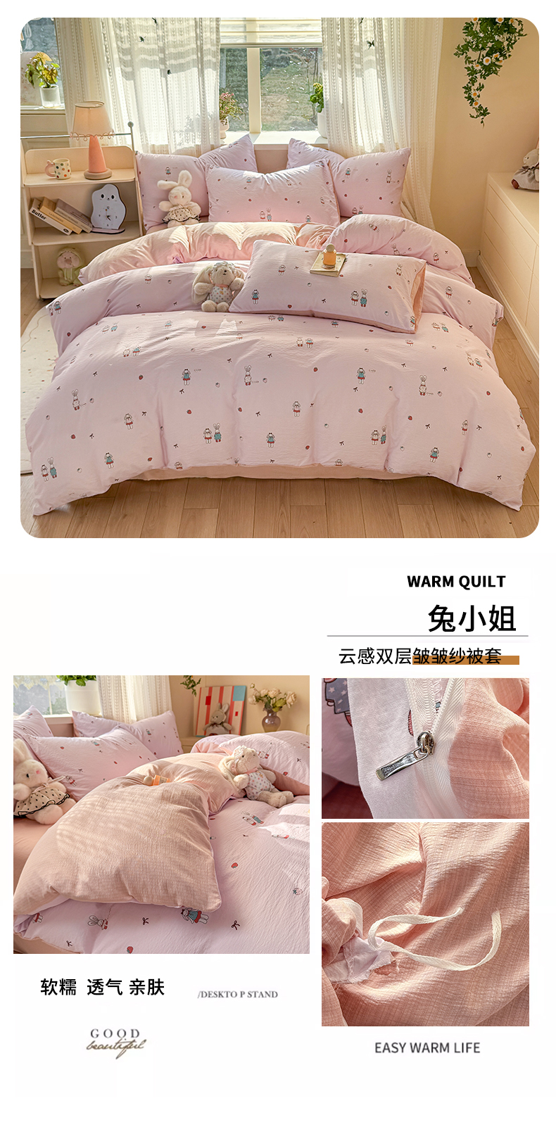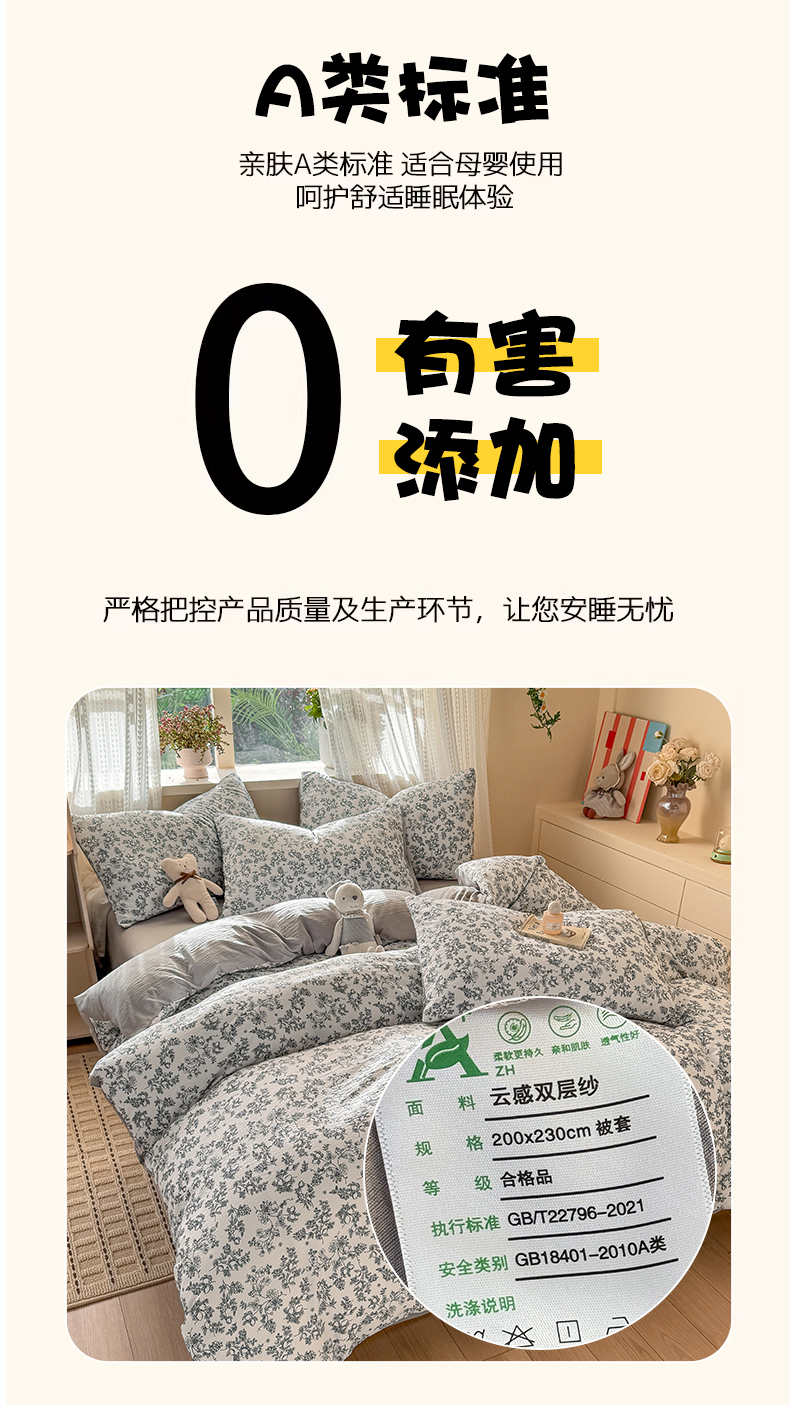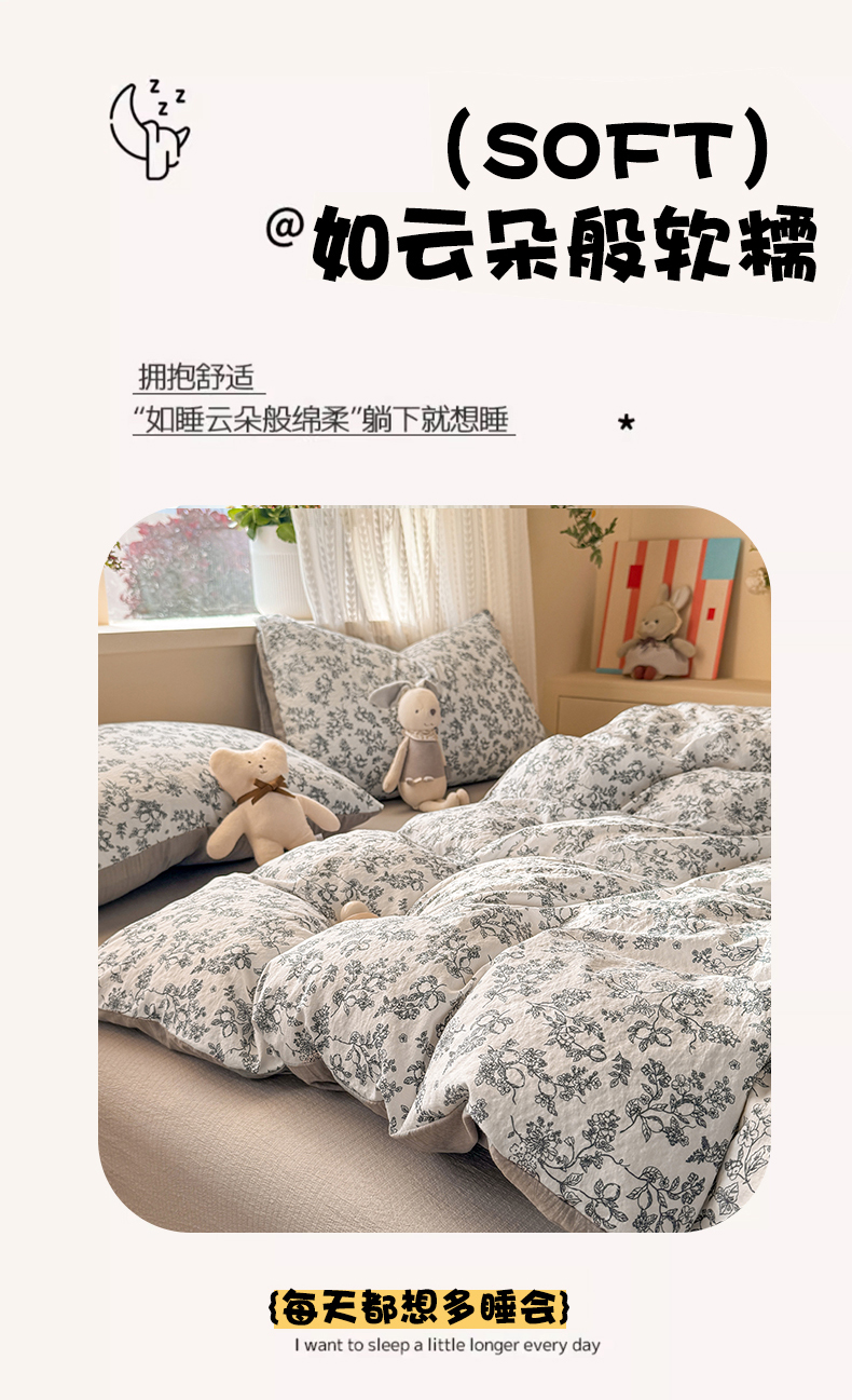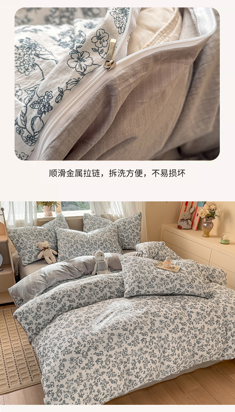 商品名称:丽美人家纺 2026新款A类皱皱纱双层印花单被套 BT花开漫漫