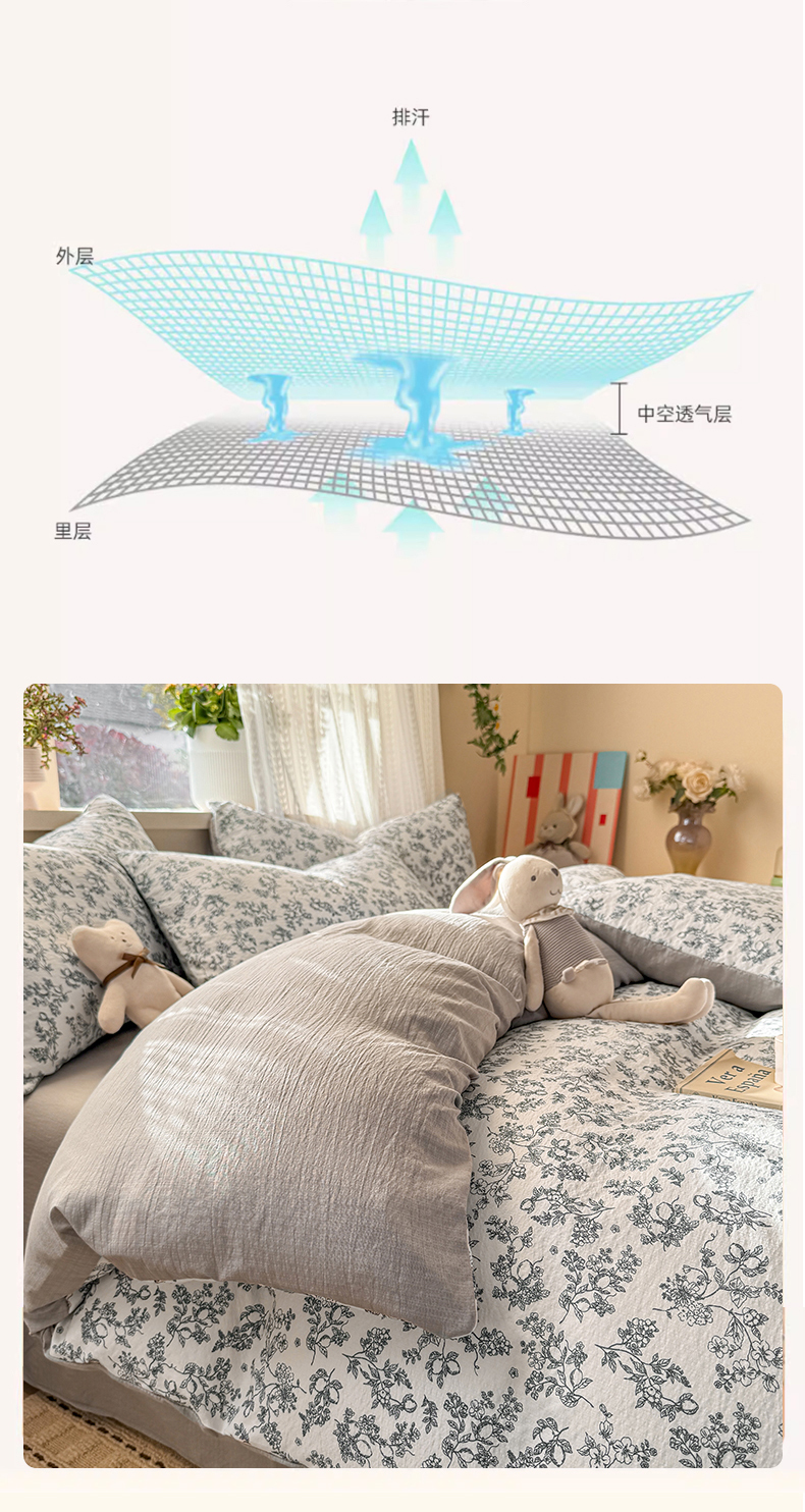 丽美人家纺 2026新款A类皱皱纱双层印花单被套 BT花开漫漫