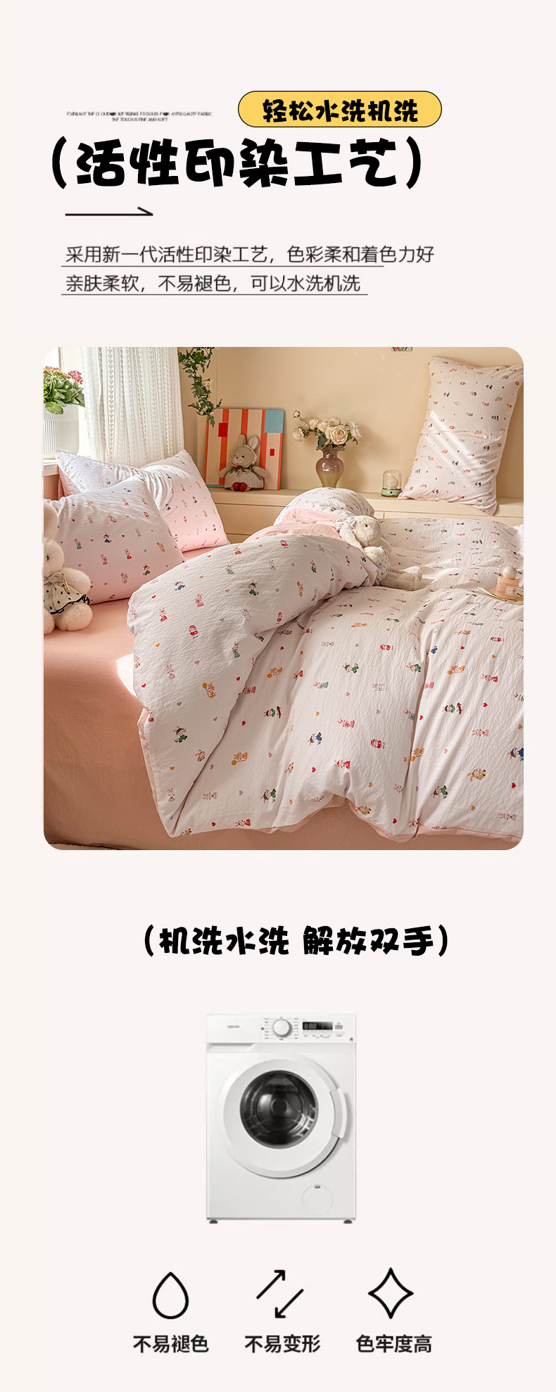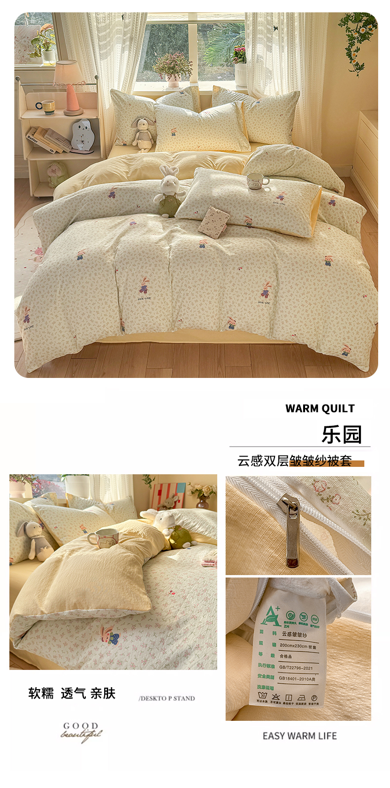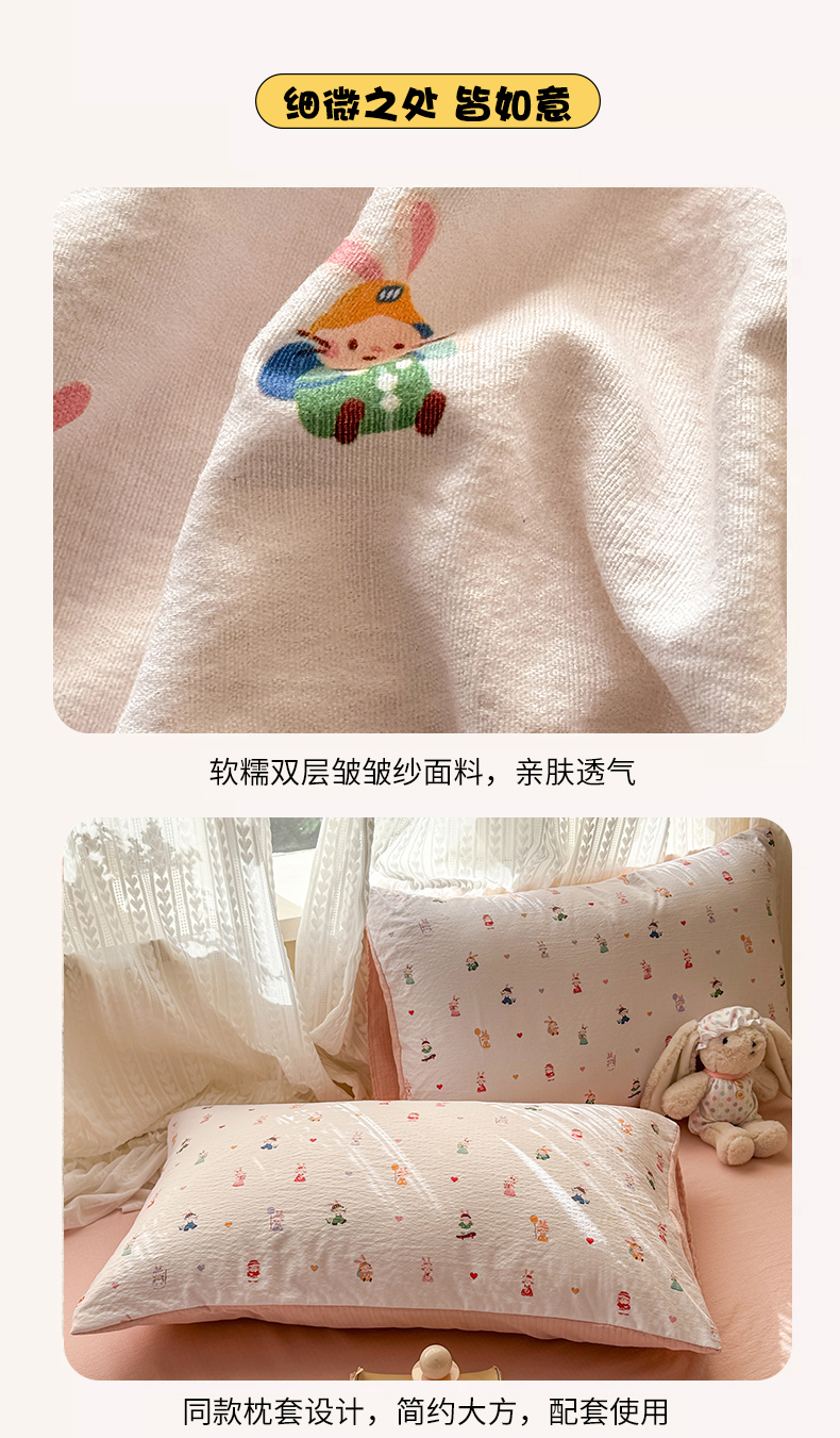 商品名称:丽美人家纺 2026新款A类皱皱纱双层印花单被套 BT桃心萌兔集