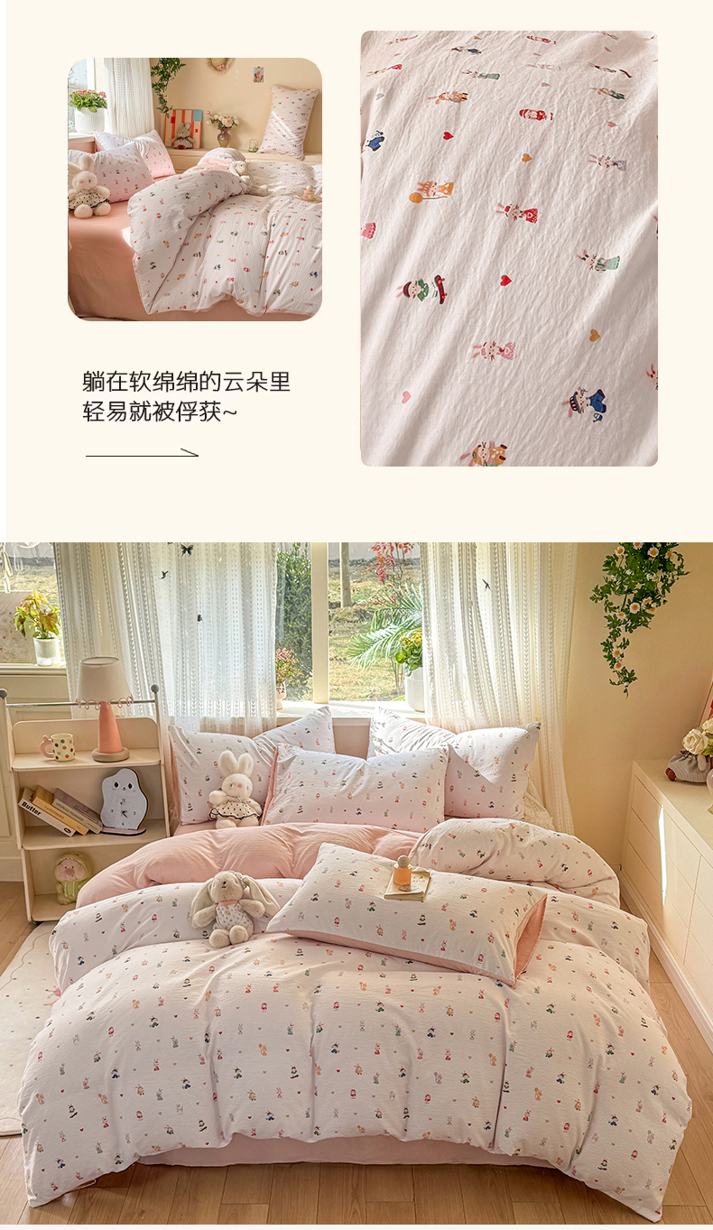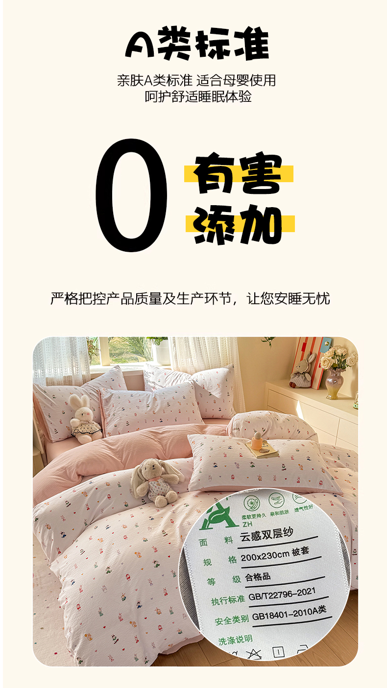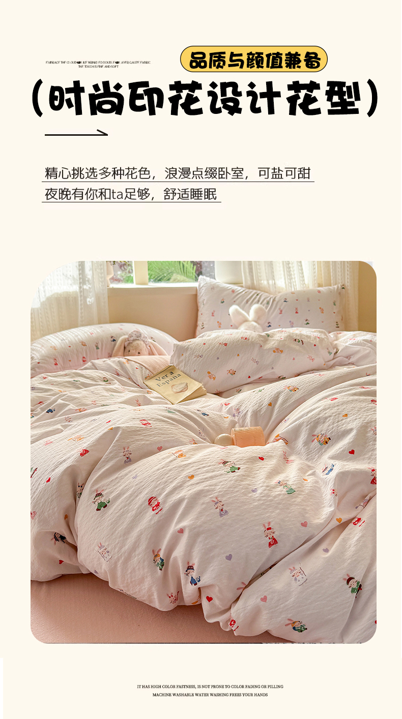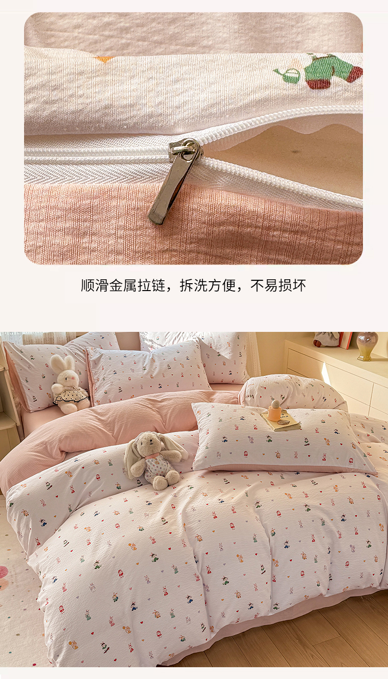 商品名称:丽美人家纺 2026新款A类皱皱纱双层印花单被套 BT桃心萌兔集