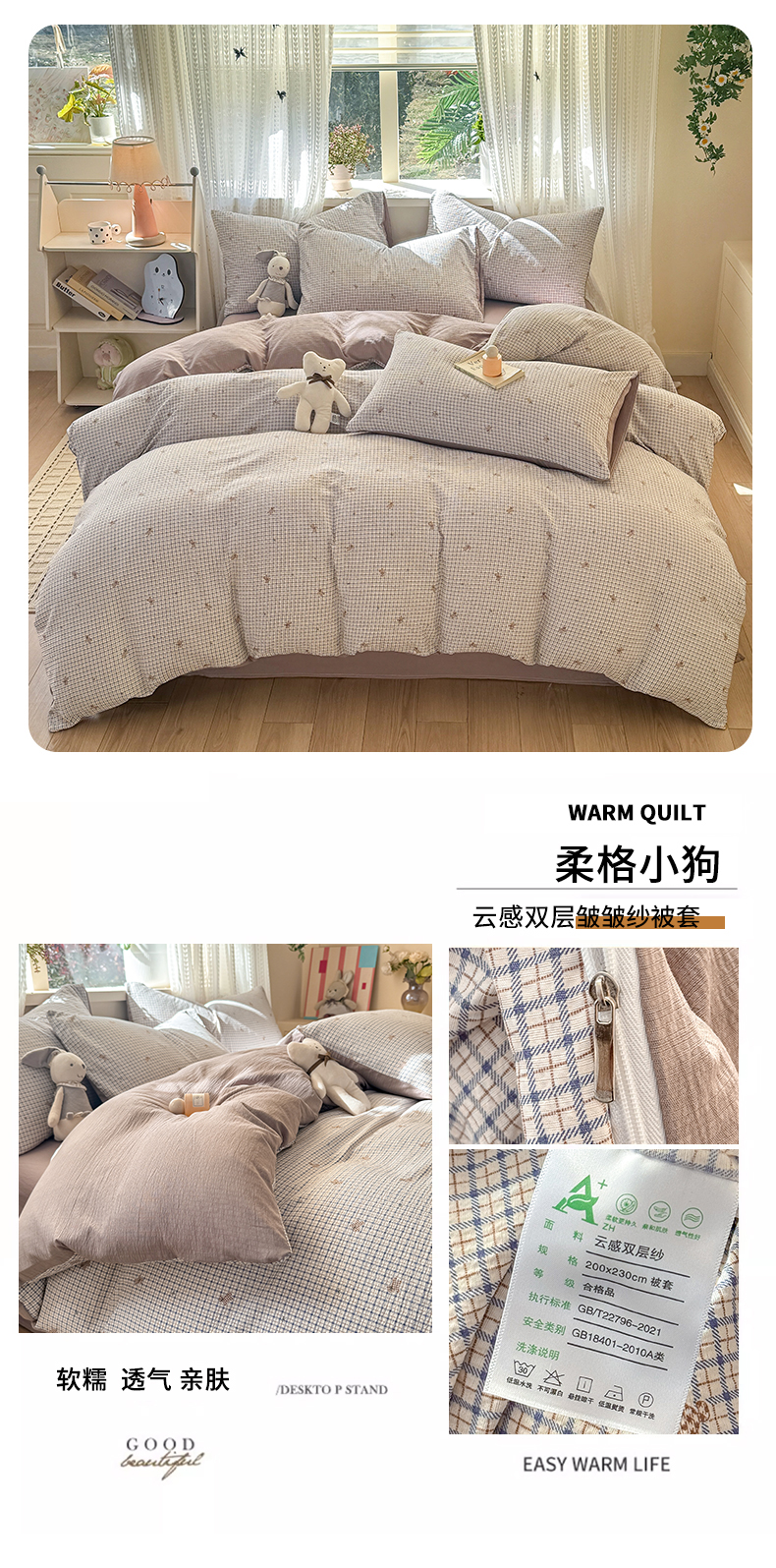 (总)丽美人家纺 2026新款双层皱皱纱大豆夹棉床笠单床笠床笠单件,JM花开漫漫,JM贝拉,JM布兰卡,JM粉格猫咪,JM格仔萌宠,JM可爱小狗,JM腊肠狗,JM乐园,JM玛丽,JM时光,JM月境骑踪,JM紫雾叶兔