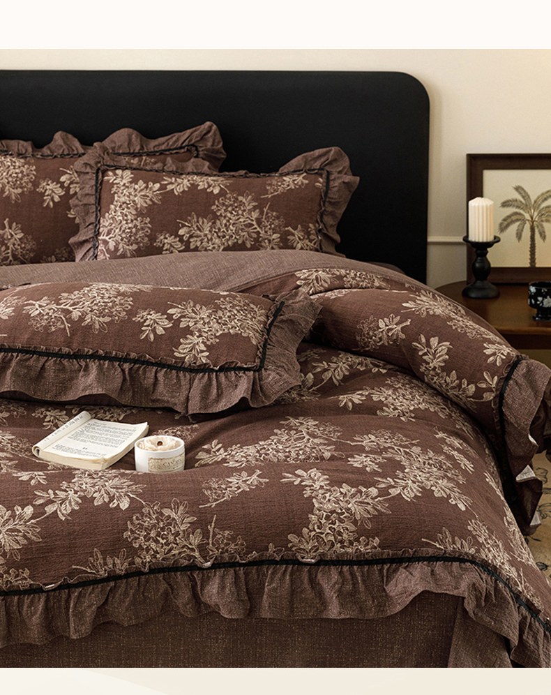 (总)悦然毛巾被 2026新款原麻水洗提花四件套,粉枝絮语,花境织梦,咖枝雾影,蓝花雾影,紫萝绮梦,紫莓花田,紫枝凝香,棕枝花信