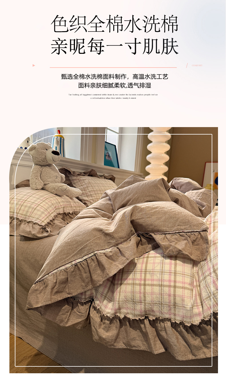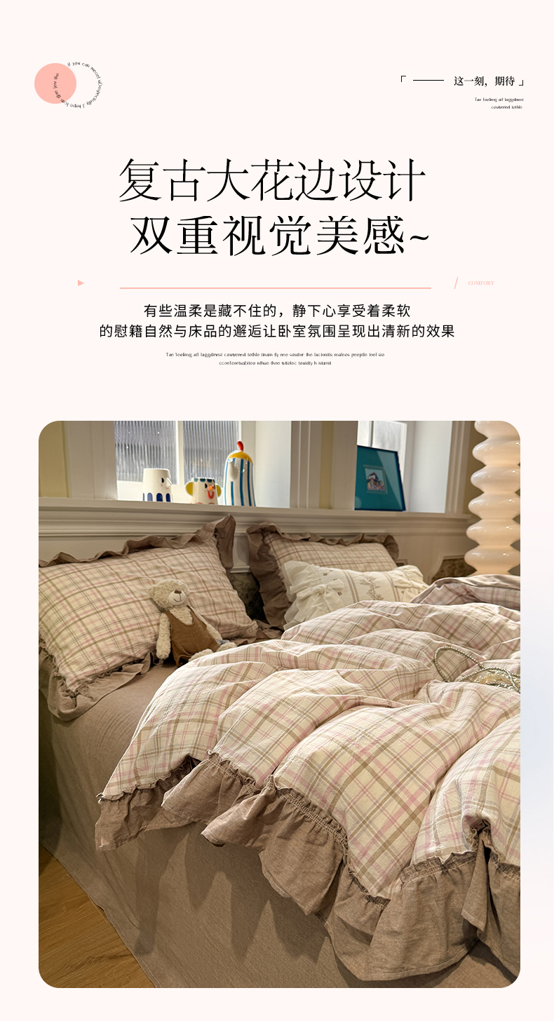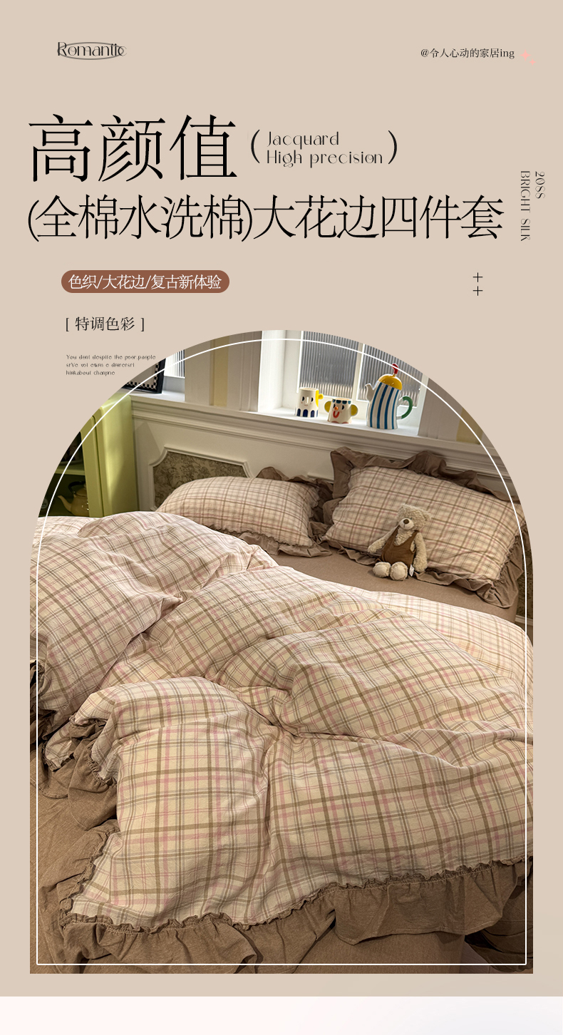 曼町家居 2026春夏全棉纯棉水洗棉花边款四件套 季野