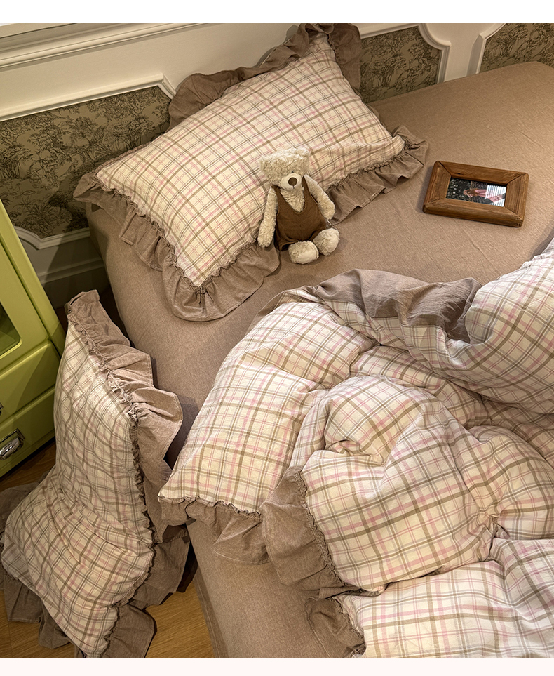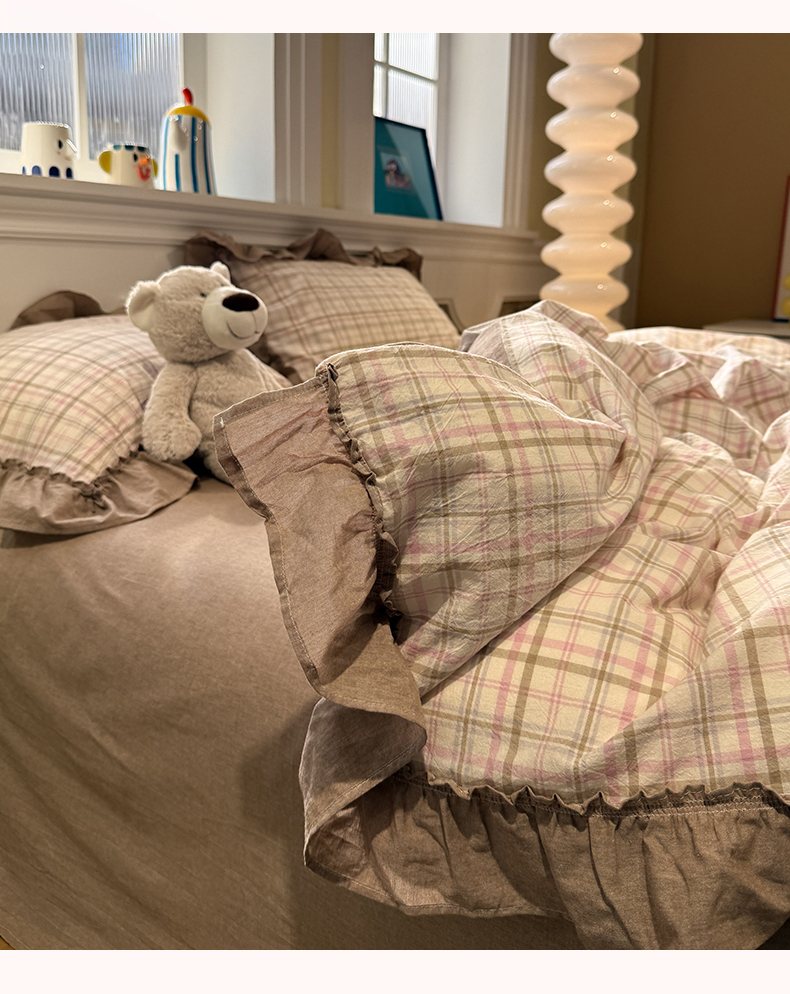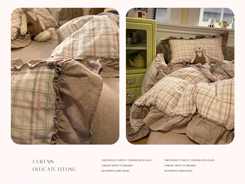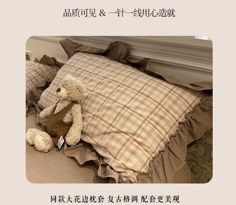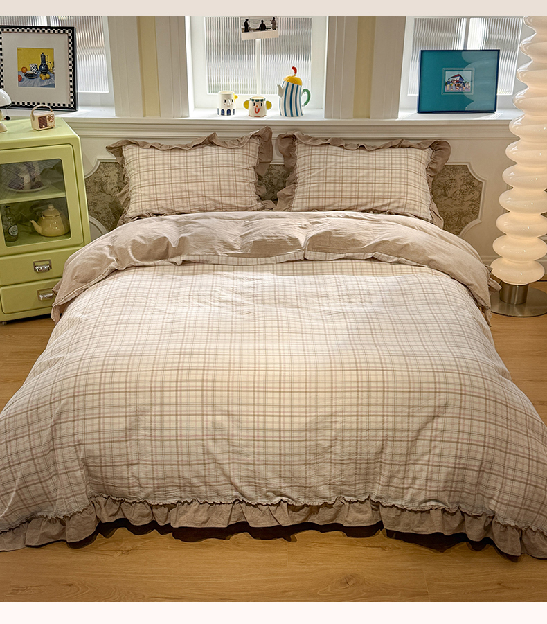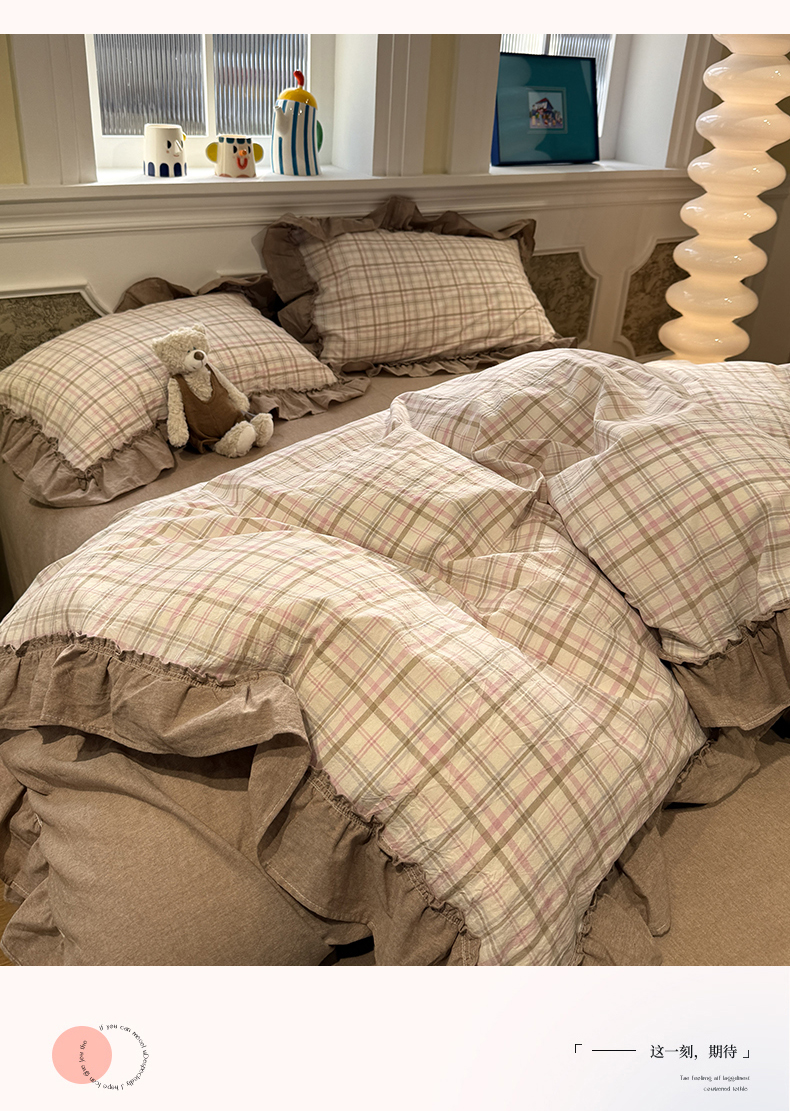 曼町家居 2026春夏全棉纯棉水洗棉花边款四件套 季野