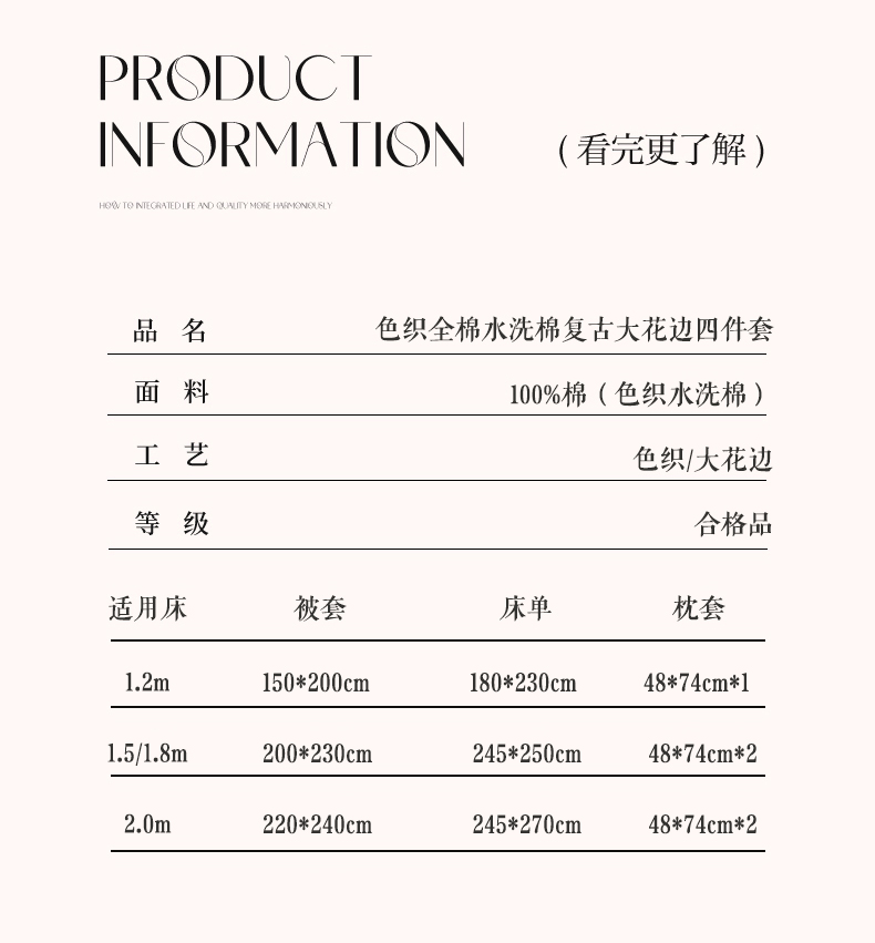 商品名称:曼町家居 2026春夏全棉纯棉水洗棉花边款四件套 季野