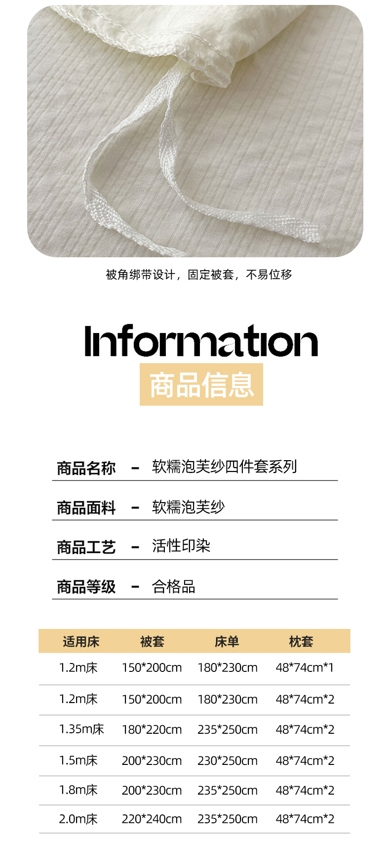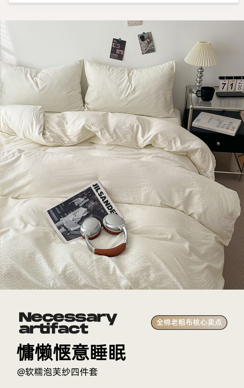 当前位置: 91家纺网 > 商品网购 > 床品套件 > 四件套 > 其它四件套 > 彩韵家纺 2026新款软糯泡芙纱纯色四件套 泡芙-奶霜米白
